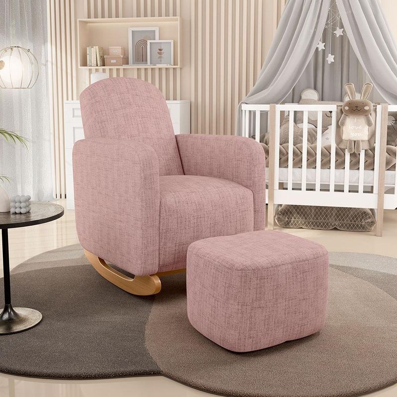 Crie o conjunto completo para a jornada da maternidade. Esta combinação foi pensada para oferecer o máximo conforto e suporte. A Poltrona de Amamentação Saori, com seu balanço acolhedor e design orgânico, é o lugar perfeito para o vínculo entre mãe e bebê. Além disso, o Puff Saori oferece apoio elevado para os pés, melhorando a circulação e a postura, transformando o ato de amamentar ou embalar em um momento de conforto profundo para o corpo todo. Em outras palavras, esta poltrona de amamentação com puff é santuário de bem-estar, onde cada detalhe foi pensado para cuidar de você, enquanto você cuida dele do seu bem mais precioso. Garanta já esse kit e surpreenda-se! Dimensões do Puff (L x A x P) 53 x 35 x 42 cm Dimensões da Poltrona (L x A x P) 67 x 98 x 92 cm Medidas Internas da Poltrona Assento livre (L x P): 51 x 56 cm Encosto livre (L x P): 51 x 61 cm Altura do chão ao assento: 47 cm Braço (L x A): 9 x 66 cm Características: Estrutura em madeira de eucalipto reflorestada. Revestimento em tecido Linho de alta qualidade na tonalidade Rosa. Poltrona e puff com assento tapeçado com espuma D-26. Percintas elásticas na poltrona para maior conforto e durabilidade. Encosto e braços tapeçados em espuma D-23 com bordas curvas, estilo orgânico. Poltrona com base de balanço em madeira estilo canoa. Puff com pés em sapatas plásticas. Peso suportado: Até 120 kg cada peça. - Por se tratar de estofado as medidas podem ter uma pequena variação de até 3 cm. - A tonalidade do produto real poderá ter ligeira variação devido o lote de tecidos. - Indicado para uso residencial, sua limpeza deve ser feita com pano levemente umedecido em água limpa, sem esfregar, não utilizar produtos abrasivos, desengordurantes, álcool ou solvente. Observações importantes: - Produto para uso residencial em ambiente interno, não devendo ficar exposto diretamente ao sol, calor e umidade excessivos. - Pode haver alguma diferença de tonalidade entre a imagem e o produto real, por conta do tratamento de imagens e a calibração de cores do seu monitor. - As imagens são meramente ilustrativas, não acompanham objetos de decoração e eletrônicos. - Ao receber a mercadoria, o cliente deve verificar as condições da embalagem, caso haja alguma avaria não assine o comprovante de recebimento e entre em contato com nossa loja para orientações. - Montagem, desmontagem e outras instalações serão de responsabilidade do cliente. Não nos responsabilizamos, no ato da entrega, por subir escadas/elevadores ou pelo transporte por guincho em apartamentos. Eventuais despesas são de responsabilidade do comprador. - Confira as dimensões do produto e certifique-se de que passará normalmente por supostos elevadores, portas, escadas e/ou corredores de sua residência.