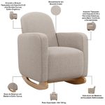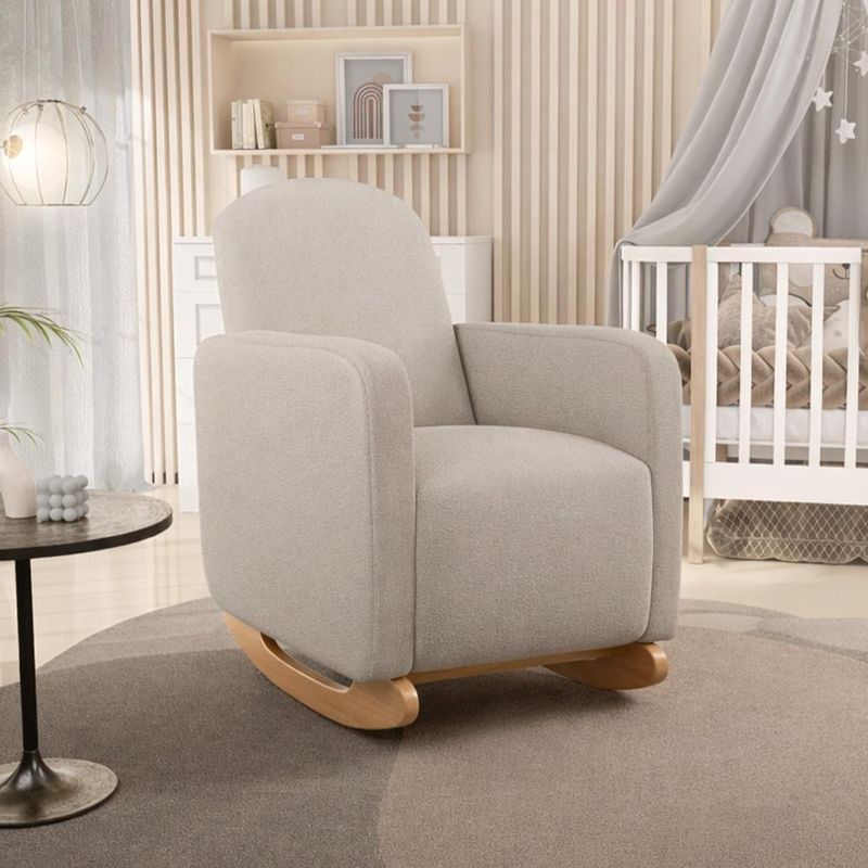 Mais do que uma poltrona de amamentação, um porto seguro para você e seu bebê. A Poltrona Saori envolve você com seu design orgânico de curvas suaves, enquanto o balanço suave e silencioso acalma e aconchega. A base em madeira estilo canoa traz leveza e um toque moderno ao quarto, ao passo que o estofamento com a espuma de alta resiliência D-26 oferece suporte perfeito para longas e preciosas horas de amamentação e conexão. Em outras palavras, uma poltrona de amamentação com balanço que entende a beleza e a intensidade da maternidade. Garanta a sua agora mesmo e aproveite todos os momentos de conexão e cuidado com seu bebê! Dimensões do produto (L x A x P) 67 x 98 x 92 cm Medidas Internas Assento livre (L x P): 51 x 56 cm Encosto livre (L x P): 51 x 61 cm Altura do chão ao assento: 47 cm Braço (L x A): 9 x 66 cm Características: Estrutura em madeira de eucalipto reflorestada. Revestimento em tecido Bouclê de alta qualidade na tonalidade Creme. Assento tapeçado com espuma D-26 e percintas elásticas, para maior conforto e durabilidade. Encosto e braços tapeçados em espuma D-23 com bordas curvas, estilo orgânico. Base de balanço em madeira estilo canoa. Peso suportado: Até 120 kg. - Por se tratar de estofado as medidas podem ter uma pequena variação de até 3 cm. - A tonalidade do produto real poderá ter ligeira variação devido o lote de tecidos. - Indicado para uso residencial, sua limpeza deve ser feita com pano levemente umedecido em água limpa, sem esfregar, não utilizar produtos abrasivos, desengordurantes, álcool ou solvente. Observações importantes: - Produto para uso residencial em ambiente interno, não devendo ficar exposto diretamente ao sol, calor e umidade excessivos. - Pode haver alguma diferença de tonalidade entre a imagem e o produto real, por conta do tratamento de imagens e a calibração de cores do seu monitor. - As imagens são meramente ilustrativas, não acompanham objetos de decoração e eletrônicos. - Ao receber a mercadoria, o cliente deve verificar as condições da embalagem, caso haja alguma avaria não assine o comprovante de recebimento e entre em contato com nossa loja para orientações. - Montagem, desmontagem e outras instalações serão de responsabilidade do cliente. Não nos responsabilizamos, no ato da entrega, por subir escadas/elevadores ou pelo transporte por guincho em apartamentos. Eventuais despesas são de responsabilidade do comprador. - Confira as dimensões do produto e certifique-se de que passará normalmente por supostos elevadores, portas, escadas e/ou corredores de sua residência.