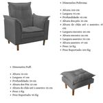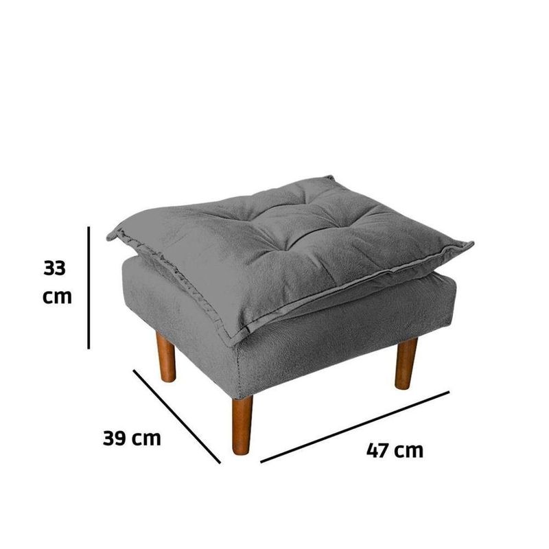 Poltrona De Amamentação Loana Com Puff Suede CinzaAnúncio de Poltrona de Amamentação Loana com Puff SuedeSeu momento de amamentar será ainda mais confortável e aconchegante com a Poltrona de Amamentação Loana! Com um design elegante e estrutura de alta qualidade, ela é perfeita para o seu ambiente interno. Especificações da Poltrona:Altura: 105 cmLargura: 91 cmProfundidade: 45 cmAltura dos pés: 10 cmAltura do chão até o assento: 47 cmLargura do encosto: 60 cmAltura do encosto: 66 cmLargura do assento: 50 cmAltura do assento: 47 cmPeso: 18 KgPeso Suportado: 100 KgEspecificações do Puff:Altura: 33 cmLargura: 47 cmProfundidade: 39 cmAltura dos Pés: 10 cmAltura do chão até o assento: 32 cmPeso: 5 KgPeso Suportado: 90 KgCaracterísticas do Produto:Estrutura: Feita com Madeira de Eucalipto, proporcionando maior resistência e durabilidade, além de ser resistente a cupins. Possui percinta elástica para oferecer mais flexibilidade e conforto durante o uso. O enchimento é feito com espuma de fibra siliconada.Tecido: Revestida em Suede, um material macio, suave e de fácil limpeza.Material dos Pés: Os pés da poltrona e do puff também são feitos de Madeira de Eucalipto, garantindo estabilidade e beleza ao conjunto.Garantia: Oferecemos 90 dias de garantia contra defeitos de fabricação, proporcionando mais tranquilidade para sua compra.Montagem: A poltrona é entregue já montada, sendo necessário apenas rosquear os pés, tornando o processo de montagem simples e rápido.Instruções de Limpeza: A limpeza é fácil e prática, basta utilizar um pano limpo e levemente úmido para manter a poltrona sempre impecável.Observações Relevantes:Uso Residencial: A poltrona é ideal para uso em ambientes internos, evitando exposição direta ao sol, calor e umidades excessivas.Variação de Cor: Pode haver diferença de tonalidade entre a imagem e o produto real, devido ao tratamento de imagens e calibração de cores do seu monitor. Além disso, a tonalidade pode variar entre lotes do fabricante do tecido.Imagens Ilustrativas: Objetos de decoração e eletrodomésticos presentes nas imagens não acompanham o produto.Dimensões do Produto: Verifique as dimensões da poltrona no momento da compra e certifique-se de que ela passará facilmente por escadas, elevadores, portas e corredores.Aproveite agora mesmo e adquira a Poltrona de Amamentação Loana com Puff Suede para desfrutar de momentos de carinho e conforto ao lado do seu bebê! Não perca essa oportunidade!