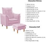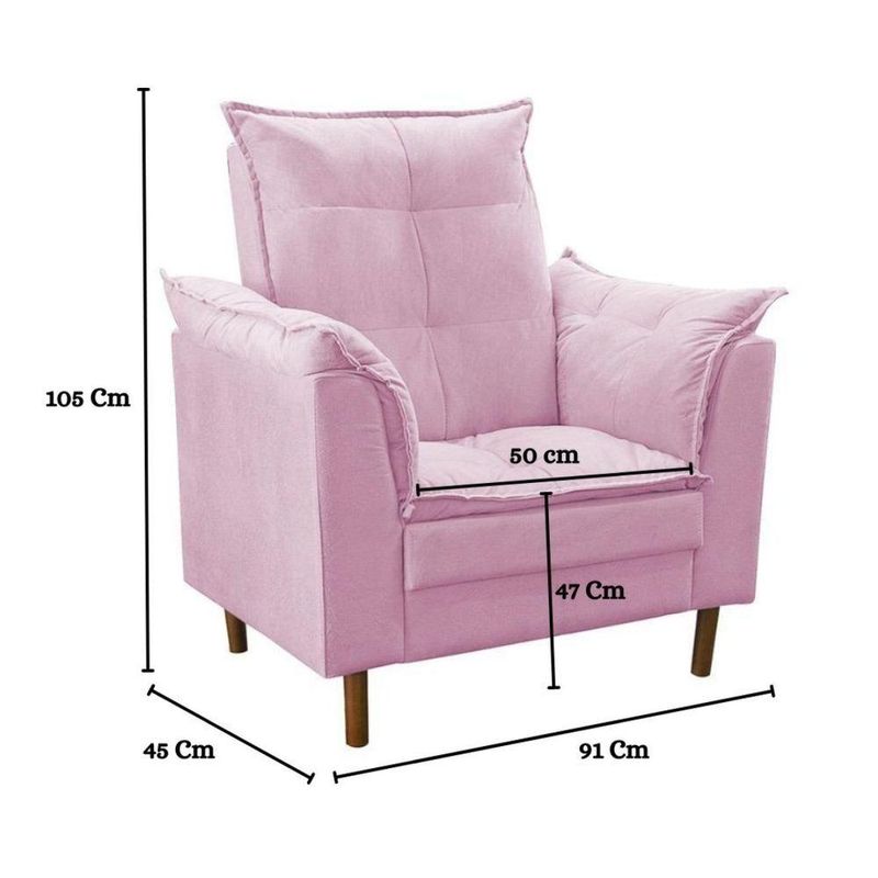 Poltrona De Amamentação Loana Com Puff Suede Cor:rosêNão deixe o conforto de lado na hora da amamentação, pensando nisso, a Poltrona Loana com Puff é a escolha certeira para fazer parte do momento incrível de conexão da mãe com o bebê. Nesta nova e desafiante fase, a poltrona de amamentação ideal faz total diferença para que flua naturalmente e atenda todas as necessidades, deixando a mãe e o bebê extremamente confortáveis. Além de ser cheia de charme, conta com design diferenciado e exclusivo, estrutura em madeira de eucalipto e o revestimento em suede que garante maciez ao toque. Ah, sem contar que o puff é um componente aliado para o conforto dos pés, detalhe que faz total diferença.Este kit encanta não é mesmo? Garanta já!Dimensões Poltrona:Altura: 105 cmLargura: 91 cmProfundidade: 45 cmAltura dos pés: 10 cmAltura do chão até o assento: 47 cmLargura encosto: 60 cmAltura encosto: 66 cmLargura assento: 50 cmAltura assento: 47 cmPeso: 18 KgPeso Suportado: 100 KgDimensões Puff:Altura: 33 cmLargura: 47 cmProfundidade: 39 cmAltura dos Pés: 10 cmAltura do chão até o assento: 32 cmPeso: 5 KgPeso Suportado: 90 KgEspecificações do Produto:Estrutura: Madeira de eucalipto, suporta maior peso e resistente à cupins. Percinta elástica, que traz mais flexibilidade e conforto.Enchimento espuma de fibra siliconada.Tecido: Suede.Material dos pés: Madeira de eucalipto.Garantia: 90 dias contra defeito de fabricação.Montagem: O produto vai montado, necessitando apenas rosquear os pés.Instruções de Limpeza: Utilizar um pano limpo e levemente úmido.Você irá receber: 01 volume.Observações Relevantes:- Produto para uso residencial em ambiente interno, não devendo ficar exposto diretamente ao sol, calor e umidades excessivas.- Pode haver alguma diferença de tonalidade entre a imagem e o produto real, por conta do tratamento de imagens e a calibração de cores do seu monitor.- Para futuras compras, não garantimos a mesma tonalidade de cor, pois existe variação a cada lote do fabricante do tecido.- As imagens são meramente ilustrativas, não acompanham objetos de decoração e eletros.- Confira as dimensões do produto no momento da compra e certifique-se de que passará normalmente por escadas, elevadores, portas e corredores.