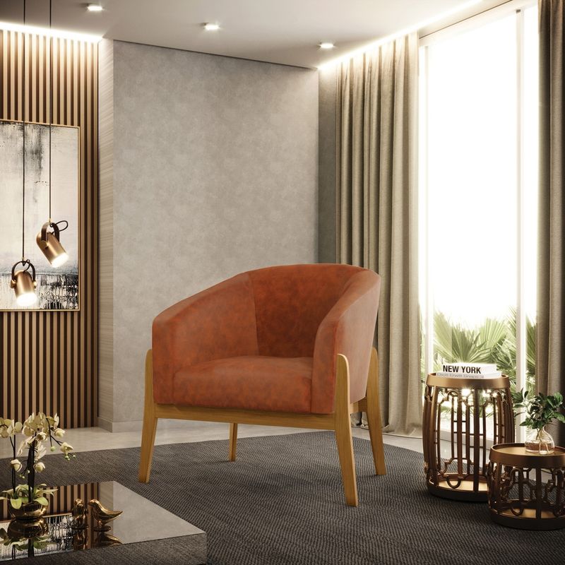 A Poltrona Decorativa Stella é a combinação perfeita de conforto, elegância e modernidade. Seu design curvo e marcante oferece uma sensação única de aconchego, como um abraço acolhedor, tornando-se a peça ideal para compor sua decoração com estilo e sofisticação. Revestida em Sintético PU, a poltrona traz o toque da tendência atual. Seja na sala de estar, quarto ou escritório, ela se adapta com facilidade. Sua estrutura robusta é sustentada por uma base de madeira (fixa), unindo resistência e design contemporâneo. A tendência desse estilo minimalista ganha destaque, conferindo sofisticação ao móvel, que é perfeito para qualquer espaço que exija funcionalidade e bom gosto. Com enchimento em espuma D-23 no encosto e assento, a Poltrona Decorativa Stella garante o máximo de conforto, mesmo em longos períodos de uso. Seu acabamento impecável reflete a qualidade dos produtos oferecidos pela D’Rossi, que sempre prioriza resistência e durabilidade. A D’Rossi se dedica a proporcionar a melhor experiência de compra, combinando uma seleção de itens decorativos de alta qualidade, como tapetes, quadros, espelhos e mais, com um atendimento excepcional para transformar sua decoração com estilo e confiança. Dimensões do Produto: Altura Total: 81 cm Largura Total: 85 cm Profundidade Total: 60 cm Altura do Encosto: 40 cm Largura do Assento: 45 cm Profundidade do Assento: 45 cm Altura do chão ao Assento: 45 cm Espessura do Assento: 15 cm Espessura do braço: 7 cm Altura do chão ao braço: 52 cm Altura interna do braço: 28 cm Tamanho dos pés: 30 cm Peso: 20 kg Especificações do Produto: Estrutura: Madeira Eucalipto Espuma: D-23 Tecido: Sintético PU (Disponível em várias cores) Peso Suportado: Até 120 Kg Tipo de Pés: Base de Madeira Tipo de Encosto: Fixo Tipo de Assento: Fixo Complexidade da Montagem: Baixo Montagem: O produto vai montado, apenas parafusar a base Garantia: 90 dias contra defeito de fabricação Instruções de Limpeza: Utilizar um pano limpo e levemente úmido Você irá Receber: 01 Poltrona - Entregue em: 01 Volume