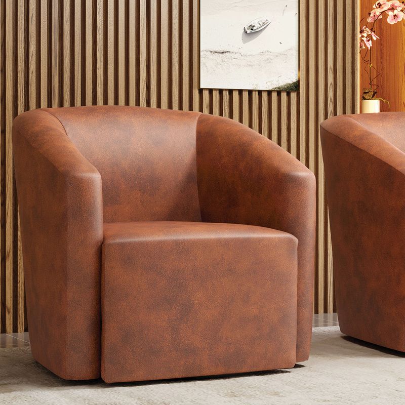 Olha só essa novidade, nossa linda Poltrona Stella Max Giratória! Um estofado que possui um design único, sofisticado e moderno, perfeito para relaxar, ler aquele bom livro ou ver sua série favorita. A Poltrona Stella Max Giratória é fabricada sob alto padrão de qualidade, para atender sua expectativa e necessidade. Seu aspecto arredondado e anatômico, possibilita que a postura fique sempre alinhada, mantendo a coluna na posição correta. Ela dispõe de um acabamento impecável, revestida em Corano em tom Nozes, um tecido fácil de limpar, super macio e muito resistente ao desgaste. Com uma estrutura robusta, sua sustentação é dada pela base giratória em metal, com formato de disco, não aparente que fica embutida. Já o enchimento é feito em espuma D-23 no encosto e assento, garantindo maior conforto e segurança ao usuário. É contemporânea e indicada para qualquer ambiente, sendo uma ótima sugestão para usá-la em área comercial, como consultórios, recepção, escritório, sala de espera, dentre outros. Ou em ambientes residenciais como quartos, sala de estar, deixando o local com uma aparência mais moderna e elegante. Gostou de conhecer sobre ela? Então não perca essa chance e adquira já a sua! Dimensões da Poltrona: Altura total: 82 cm Largura total: 70 cm Profundidade total: 65 cm Altura do encosto: 40 cm Largura do assento: 52 cm Profundidade do assento: 48 cm Altura do chão ao assento: 45 cm Espessura do braço: 7 cm Peso: 30 kg Especificações do Produto: Estrutura: Madeira Eucalipto Espuma: D-23 Tecido: Corano Tipo de pés: Base Giratória Peso suportado: Até 120 Kg Garantia: 90 dias contra defeito de fabricação Montagem: O produto vai montado, apenas parafusar a base Instruções de limpeza: Utilizar um pano limpo e levemente úmido Você irá receber: 01 Poltrona - Entregue em: 01 Volume