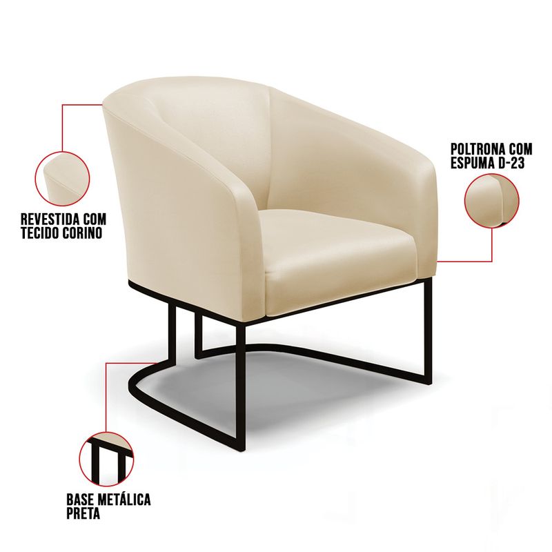 A Poltrona Decorativa Stella é a combinação perfeita de conforto, elegância e modernidade. Seu design curvo e marcante oferece uma sensação única de aconchego, como um abraço acolhedor, tornando-se a peça ideal para compor sua decoração com estilo e sofisticação. Revestida em Sintético, a poltrona traz o toque da tendência atual. Seja na sala de estar, quarto ou escritório, ela se adapta com facilidade. Sua estrutura robusta é sustentada por uma base industrial na cor preta, unindo resistência e design contemporâneo. A tendência do estilo industrial ganha destaque, conferindo sofisticação ao móvel, que é perfeito para qualquer espaço que exija funcionalidade e bom gosto. Com enchimento em espuma D-23 no encosto e assento, a Poltrona Decorativa Stella garante o máximo de conforto, mesmo em longos períodos de uso. Seu acabamento impecável reflete a qualidade dos produtos oferecidos pela D’Rossi, que sempre prioriza resistência e durabilidade. Além de oferecer produtos incríveis, a D’Rossi se dedica a proporcionar a melhor experiência de compra, combinando uma seleção de itens decorativos de alta qualidade, como tapetes, quadros, espelhos e mais, com um atendimento excepcional para transformar sua decoração com estilo e confiança. Dimensões do Produto: Altura Total: 81 cm Largura Total: 68 cm Profundidade Total: 60 cm Altura do Encosto: 40 cm Largura do Assento: 45 cm Profundidade do Assento: 45 cm Altura do chão ao Assento: 45 cm Espessura do Assento: 15 cm Espessura do braço: 7 cm Altura do chão ao braço: 70 cm Altura interna do braço: 28 cm Tamanho dos pés: 30 cm Peso: 21 kg Especificações do Produto: Estrutura: Madeira Eucalipto Espuma: D-23 Tecido: Sintético (Disponível em várias cores) Peso Suportado: Até 120 Kg Tipo de Pés: Base Industrial Tipo de Encosto: Fixo Tipo de Assento: Fixo Complexidade da Montagem: Baixo Montagem: O produto vai montado, apenas parafusar a base Garantia: 90 dias contra defeito de fabricação Instruções de Limpeza: Utilizar um pano limpo e levemente úmido Você irá Receber: 01 Poltrona - Entregue em: 01 Volume