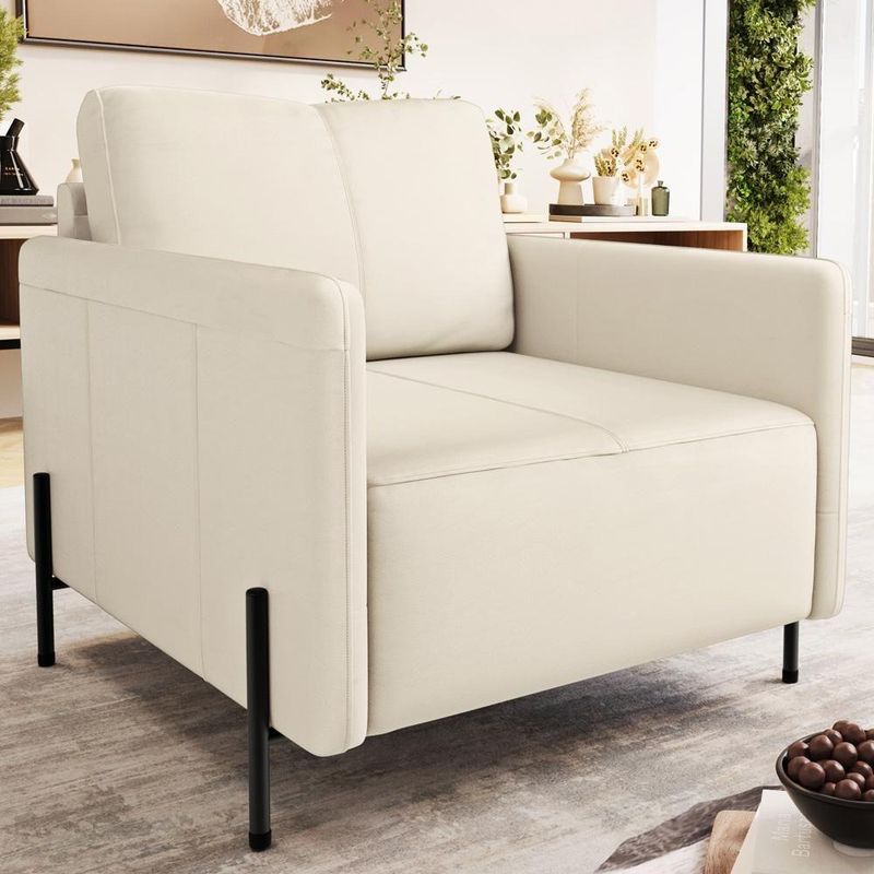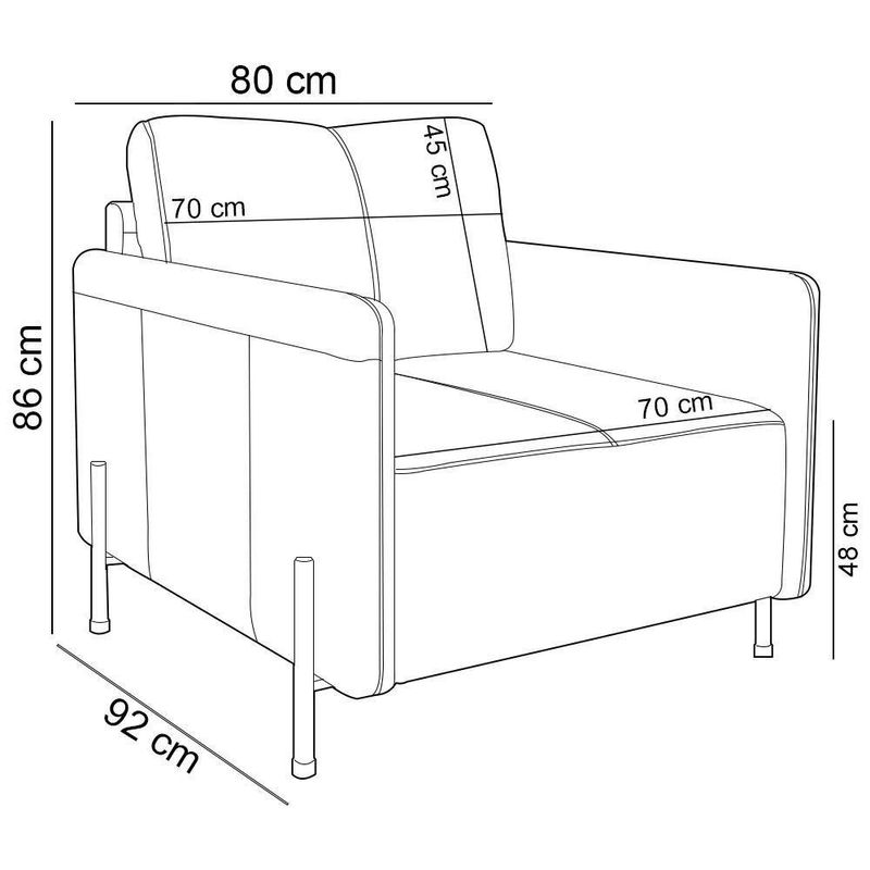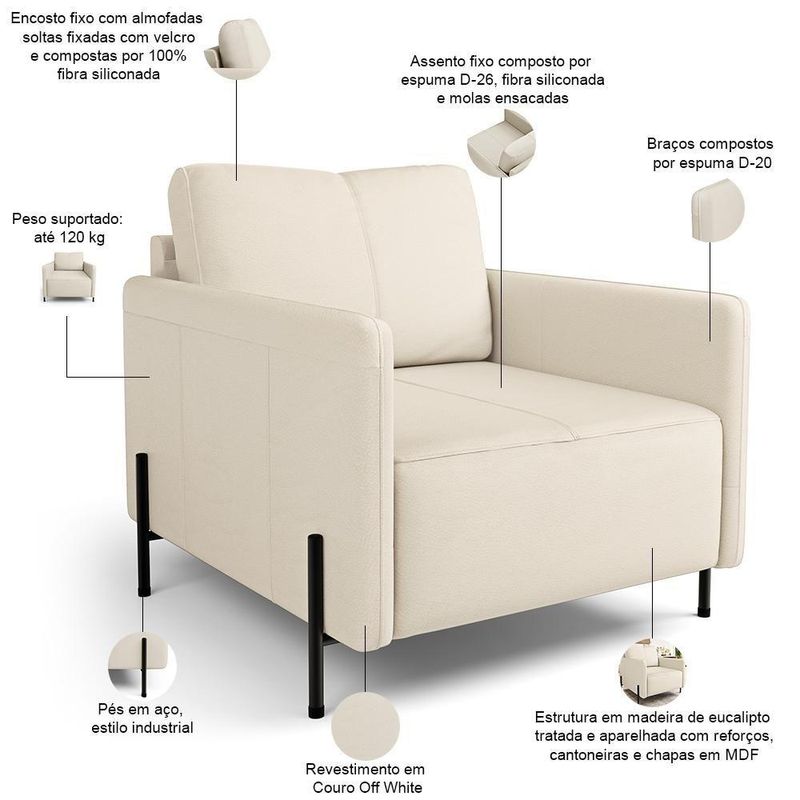 Poltrona Decorativa Para Sala Living Pés Industrial Domani L06 Couro Off White - Lyam DecorConheça a Poltrona Decorativa Domani, a peça que sua casa estava esperando! Com um design sofisticado, essa poltrona moderna é perfeita para quem busca adicionar um toque de elegância a qualquer ambiente.Seus pés metálicos em estilo industrial conferem não somente beleza, mas também um charme contemporâneo que se destaca em sala de estar, living, escritório ou até mesmo no seu cantinho de leitura. Confortável e versátil, a poltrona industrial Domani harmoniza com diversos estilos de decoração, sendo a escolha ideal para quem quer ousar sem abrir mão do conforto. Transforme seu lar em um verdadeiro espaço de estilo e aconchego com a Poltrona Decorativa Domani. Adquira a sua agora e veja a mágica acontecer em cada canto! Dimensões total do produto (L x A x P) 80 x 86 x 92 cm Medidas Internas Largura livre do assento: 70 cm Altura do chão ao assento: 48 cm Encosto (L x A): 70 x 45 cm Características: Estrutura em madeira de eucalipto tratada e aparelhada com reforços, cantoneiras e chapas em MDF. Revestimento em tecido Couro de alta qualidade na tonalidade Off White. Encosto fixo com almofadas soltas fixadas com velcro e compostas por 100% fibra siliconada. Assento fixo composto por espuma D-26, fibra siliconada e molas ensacadas. Pés em aço, estilo industrial. Peso suportado: até 120 kg. - Por se tratar de estofado as medidas podem ter uma pequena variação de até 3 cm. - A tonalidade do produto real poderá ter ligeira variação devido o lote de tecidos. - A limpeza deve ser feita com pano levemente umedecido em água limpa, sem esfregar, não utilizar produtos abrasivos, desengordurantes, álcool ou solvente. Observações importantes: - Produto para uso residencial em ambiente interno, não devendo ficar exposto diretamente ao sol, calor e umidade excessivos. - Pode haver alguma diferença de tonalidade entre a imagem e o produto real, por conta do tratamento de imagens e a calibração de cores do seu monitor. - As imagens são meramente ilustrativas, não acompanham objetos de decoração e eletrônicos. - Ao receber a mercadoria, o cliente deve verificar as condições da embalagem, caso haja alguma avaria não assine o comprovante de recebimento. - Montagem, desmontagem e outras instalações serão de responsabilidade do cliente. Não nos responsabilizamos, no ato da entrega, por subir escadas/elevadores ou pelo transporte por guincho em apartamentos. Eventuais despesas são de responsabilidade do comprador. - Confira as dimensões do produto e certifique-se de que passará normalmente por supostos elevadores, portas, escadas e/ou corredores de sua residência. Material de enchimento do encosto: Fibras Siliconadas | MaterialFamily: Madeira de Eucalipto | Desenho do tecido: Liso | ProductWeight: 50 kg | Material do estofamento: Couro | Formato do sofá: Linear | SupplierSimpleName: Poltrona Decorativa Para Sala Living Pés Industrial Domani L06 Couro Off White - Lyam Decor | ProductWarranty: 90 dias após o recebimento do produto | Largura: 80 cm | Cor: Off White | Color: OFF WHITE | ColorFamily: Off White | Peso: 50 kg | Densidade da espuma do assento: D-26 | Peso máximo suportado: 120 kg | SizeDescription: Altura: 86 cm x Largura: 80 cm x Profundidade: 92 cm | Mecanismo de abertura do produto: na | ProductHeight: 86 cm | Fabricante: Lyam Decor | ColorSimple: Off White | Material: Madeira de Eucalipto | Model: Domani | Linha: Sala de Estar, Living | Estilo: Moderno, Industrial | Tipo de produto: Poltrona Decorativa | Unidades por kit: 1 | Orientação do Sofá: Frontal | ColorSupplier: Off White | OriginCountry: Brasil | ProductContents: 01 Poltrona | Profundidade: 92 cm | ProductLength: 92 cm | Altura: 86 cm | Quantidade de Caixas de embalagem: 1 | Cor dos pés: Preto | OriginState: PR | Requer montagem: Não, apenas o encaixe dos pés | ProductInstructions: Produto para uso em ambiente interno, nao devendo ficar exposto ao sol, calor e umidade excessivos. | ProductWidth: 80 cm