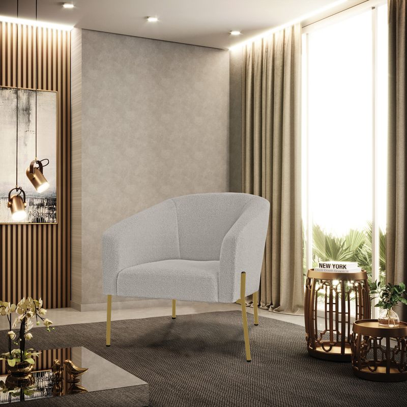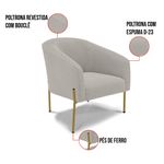 Tem novidades chegando por aqui! Olha só essa nossa inédita Poltrona Stella Bouclê. A Poltrona Stella Bouclê é para todas as ocasiões, é ideal para você relaxar, assistir tv ou ler um livro, mantendo-o confortável ao longo do dia! Um estofado versátil, que foge do convencional pelo seu design e tecido luxuoso. Seu formato curvo, marcante e sofisticado, oferece conforto de forma excepcional, com aquela sensação de abraço, que deixa o coração quentinho! Ela é fácil de transportar, pois tem um peso leve e um tamanho compacto. Ela suporta até 120 kg de peso, podendo ser utilizada por pessoas de diferentes biotipos. Desenvolvida com atenção aos detalhes para atender todas suas expectativas e necessidades, seu aspecto arredondado e anatômico possibilita que a postura fique sempre alinhada mantendo a coluna na posição correta. Ela dispõe de um acabamento impecável revestida em Bouclê em tom Cinza, um tecido um tecido maleável que além de ser muito bonito é a grande tendência do momento, uma lã mais refinada e quente com toque suave semelhante à textura natural da ovelha. Contém uma estrutura em madeira de reflorestamento eucalipto, sua sustentação é dada pelos Pés de Ferro Lateral Dourado, que garante mais segurança e firmeza ao sentar-se. Ela tem um acabamento reforçado e espuma de qualidade D23, que oferece maciez e aconchego. Além do mais ela tem assento com persintas elásticas, que proporcionam flexibilidade e conforto. A Poltrona Stella é um produto de alta qualidade, beleza e funcionalidade. Ah! Vale a pena lembrar que a Poltrona Stella Bouclê, foi produzida em quantidades limitadas para aqueles que procuram criar um visual diferenciado e exclusivo. Então, não deixe de aproveitar esse lançamento, hem! Leve a sua agora mesmo. Dimensões do Produto: Altura Total: 81 cm Largura Total: 77 cm Profundidade Total: 60 cm Altura do Encosto: 40 cm Largura do Assento: 45 cm Profundidade do Assento: 45 cm Altura do chão ao Assento: 45 cm Espessura do Assento: 15 cm Espessura do braço: 7 cm Altura do chão ao braço: 70 cm Altura interna do braço: 28 cm Tamanho dos pés: 30 cm Peso: 17 kg Especificações do Produto: Estrutura: Madeira Eucalipto Espuma: D-23 Tecido: Bouclê Peso Suportado: Até 120 Kg Tipo de Pés: Pés de Ferro Lateral Dourado Tipo de Encosto: Fixo Tipo de Assento: Fixo Complexidade da Montagem: Baixo Montagem: O produto vai montado, apenas parafusar a base Garantia: 90 dias contra defeito de fabricação Instruções de Limpeza: Utilizar um pano limpo e levemente úmido Você irá Receber: 01 Poltrona - Entregue em: 01 Volume