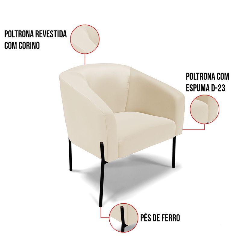 A Poltrona Stella é uma poltrona que combina elegância, conforto e durabilidade. Ela tem um design moderno e sofisticado, com pés de ferro lateral preto e revestimento em tecido Corino, que harmonizam com qualquer ambiente. Ela é ideal para sala de estar, recepções, mesa de jantar ou qualquer outro espaço que você queira decorar com estilo e bom gosto. Ela tem uma estrutura em madeira de reflorestamento eucalipto, que garante a resistência e a sustentabilidade do produto. Ela suporta até 120 kg de peso, podendo ser utilizada por pessoas de diferentes biotipos. Ela tem um acabamento reforçado e espuma de qualidade D23, que oferece maciez e aconchego. Tem pés em aço carbono e pintura eletrostática, que protegem o produto contra corrosão e desgaste. Ela tem assento com persintas elásticas, que proporcionam flexibilidade e conforto. A Poltrona Stella é um produto de alta qualidade, beleza e funcionalidade. Ela é fácil de transportar, pois tem um peso leve e um tamanho compacto. A Poltrona Stella é um produto que vai fazer a diferença na sua decoração e no seu bem-estar. Ela vai trazer charme, conforto e durabilidade para o seu ambiente. Aproveite essa oferta e leve para casa uma poltrona de qualidade por um preço incrível. Essa é a sua chance de ter uma poltrona maravilhosa por um preço imperdível. Corra e garanta a sua antes que acabe o estoque! Dimensões da Poltrona: Altura total: 81 cm Largura total: 77 cm Profundidade total: 60 cm Altura do encosto: 40 cm Largura do assento: 45 cm Profundidade do assento: 45 cm Altura do chão ao assento: 45 cm Espessura do assento: 15 cm Tamanho dos pés: 30 cm Altura do chão ao braço: 70 cm Altura interna do braço: 28 cm Espessura do braço: 7 cm Peso: 21 kg Especificações do Produto Estrutura: Madeira Eucalipto Espuma: D-23 Tecido: Corino Tipo de pés: Pés de Ferro Lateral Peso suportado: Até 120 Kg Garantia: 90 dias contra defeito de fabricação Montagem: O produto vai montado, apenas parafusar a os pés Instruções de limpeza: Utilizar um pano limpo e levemente úmido Você irá receber: 01 Poltrona - Entregue em: 01 Volume