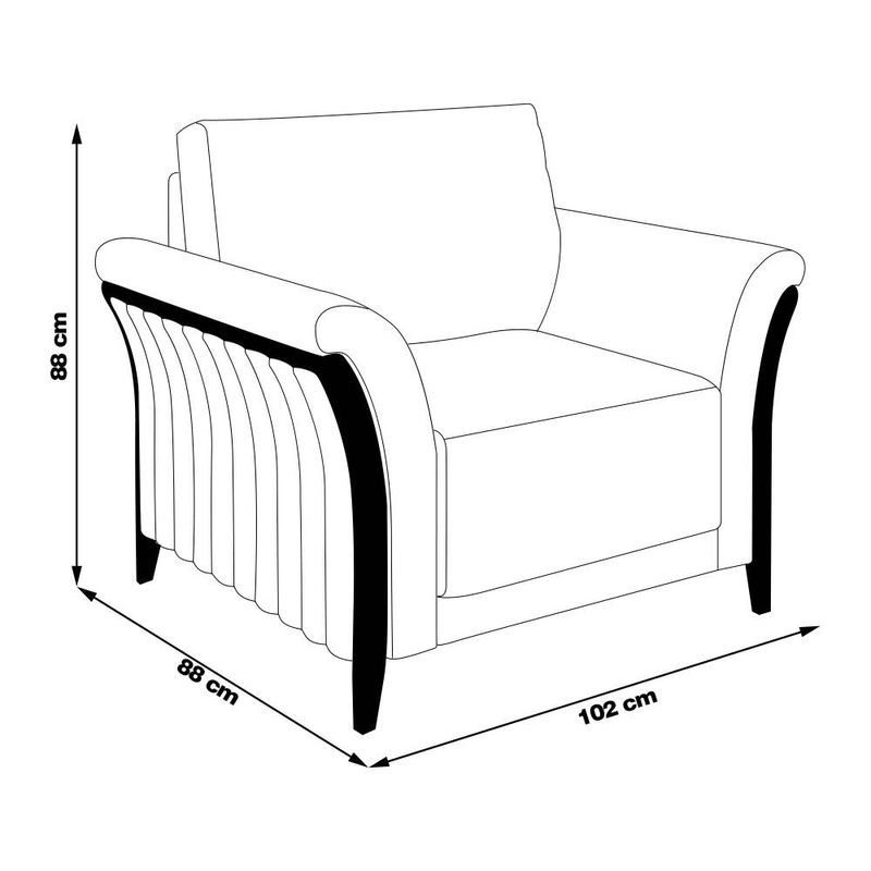 Descrição do Produto: Poltrona Decorativa Pés em Madeira Market - Gran Belo acompanha as tendências atuais de mercado combinando com todos os ambientes, contando com Madeira de Reflorestamento Imunizada contra Mofo, Cupim e Microorganismos e Sustentação do Assento e Encosto com Cintas Elásticas de Alta Resistência a Poltrona Decorativa Pés em Madeira Market garante beleza, segurança e durabilidade para o seu ambiente. Dimensões do Produto: Largura: 102cm Altura: 88cm Profundidade: 88cm Características do Produto: Material da Estrutura: Madeira de Reflorestamento (Pinus, Eucaliptus e MDF) e Adornos em Espuma D16 Assento: Espuma D26 com Manta Acrílica Encosto: Fixo com Almofada com Fibras e Flocos Revestida com Kami e Manta Acrílica Braça: Espuma D20 Acabamento Inferior: Kami Material dos Pés: Pés e Braços em Madeira Tingidos Revestimento: Veludo Conteúdo da Embalagem: 1 Poltrona Necessita de Montagem: Não Instruções/Cuidado: Evitar exposição ao sol, para que o produto não sofra alterações na cor do tecido. Não limpar com escovas ou produtos abrasivos. Observações Importantes: - As imagens são meramente ilustrativas e não acompanham objetos de decoração e eletros. - Pode haver alguma diferença de tonalidade entre a imagem e o produto, por conta do tratamento de imagens e a calibração de cores da sua tela. - Todos os nossos produtos são enviados devidamente embalados e com total segurança. - Confira as dimensões do produto no momento da compra e certifique-se de que passará normalmente por elevadores, portas, escadas e/ou corredores, evitando assim futuros desagrados ou imprevistos com a entrega do produto.