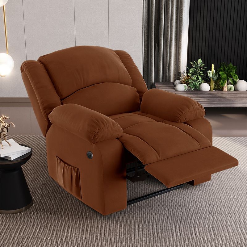 Que tal criar seu próprio home cinema? Aqui, vamos mostrar como você pode montar o seu! Com o local adequado, alguns itens decorativos e uma poltrona ideal, você garantirá um espaço confortável e imersivo. O primeiro passo é investir em equipamentos de alta qualidade! Olha só que lindeza a nossa Poltrona do Papai Reclinável Melim. Ela foi projetada para proporcionar máximo conforto e funcionalidade, esta poltrona é a escolha ideal para quem busca relaxamento, estilo e uma experiência de cinema privada. A praticidade do ajuste elétrico conta com acionamento de reclinagem por botão power elétrico Bivolt em uma das Braças, com apenas um toque, proporcionando a posição ideal, criando uma experiência incomparável. Com capacidade para suportar até 130 kg, oferecendo segurança e estabilidade ao consumidor. O revestimento em Veludo Terracota oferece um toque de sofisticação e conforto, enquanto a estrutura em Madeira de Lei Eucalipto com Controle de Umidade, Proveniente de Reflorestamento, Fixa com Grampos Galvanizados garante resistência e durabilidade. O encosto e o assento são sustentados por percintas elásticas. O braço/assento possui Enchimento em Fibra Siliconada. O assento foi preenchido com espuma D-28, respectivamente, para um conforto adicional. O assento (fixo) e o apoio de Pés Retrátil proporcionam um apoio perfeito para suas pernas, aumentando o conforto. O encosto reclinável, possibilita ajustá- lo para a posição ideal de relaxamento. Já os pés (fixos) foram feitos em aço revestido com plástico, adicionando um toque de elegância ao produto. E tem mais!! Ela contém Bolso lateral nas braças perfeito para armazenar livros e revistas, mantendo tudo ao seu alcance. Com um design moderno e prático, esta poltrona se tornará o destaque da sua sala de estar. Afinal, sua casa merece a Poltrona do Papai Reclinável Melim Power Elétrica. Adquira a sua agora mesmo e transforme sua sala de estar em um verdadeiro cinema!Dimensões do Produto: Altura Total: 100 cm Largura Total: 100 cm Profundidade Total: 114 cm Altura do Encosto: 60 cm Largura do Assento: 60 cm Profundidade do Assento: 60 cm Altura do chão ao Assento: 45 cm Largura do Braço: 20 cm Profundidade Total Aberta: 168 cm Altura dos Pés: 3 cm Peso: 62 kg Especificações do Produto: Estrutura: Madeira de Lei Eucalipto com Controle de Umidade, Proveniente de Reflorestamento, Fixa com Grampos Galvanizados Tecido: Veludo Material da Espuma: Assento/Encosto com enchimento em espuma D-28 Material do Braço: Enchimento em Fibra Siliconada Tipo de Encosto: Reclinável Tipo de Assento: Fixo Peso Suportado: Até 130 Kg Possui Pés: Sim Tipo de Pés: Fixo Material dos Pés: Aço revestido com plástico Diferenciais: Apoio de pés retrátil, botão para acionamento e bolso lateral para revistas e livros Mecanismo: POWER com Botão Bivolt Quantidade de Lugares: 1 Lugar Manual de Montagem: Não Sistema de Montagem: Necessário somente encaixe do Encosto Garantia: 90 dias contra defeito de fabricação Instruções de Limpeza: Utilizar um pano limpo e levemente úmido Você irá Receber: 01 Poltrona Entregue em: 01 Volume