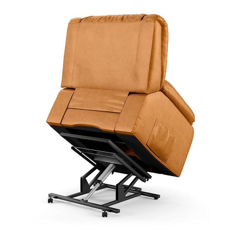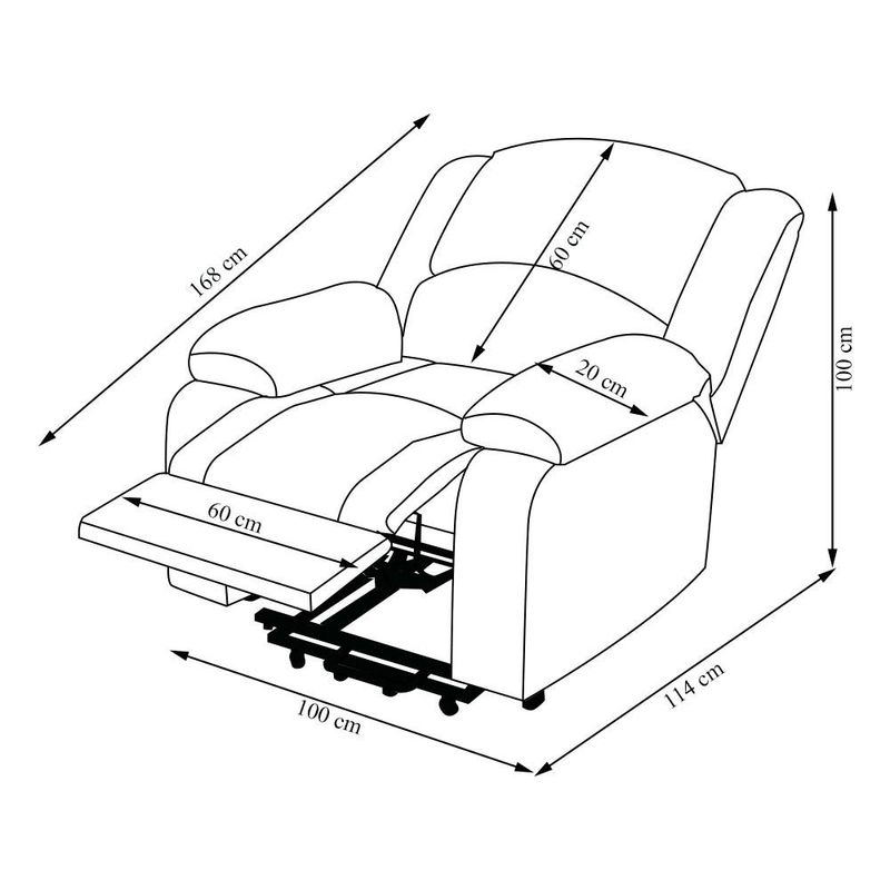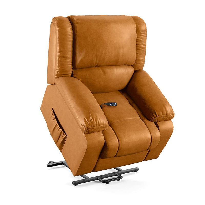 Poltrona do Papai Madrid - Gran Belo Seja para assistir TV, ler um livro, até mesmo uma sala de cinema ou simplesmente relaxar. Com um design clássico e elegante, essa poltrona possui o mecanismo LIFT, que é reclinável e também possui um sistema de elevação e inclinação, facilitando o acesso dela. O mecanismo LIFT é especialmente útil aos idosos, com dificuldade de locomoção, ou usuários que tenham dificuldade para realizar transferência da posição sentada para de pé e vice-versa. Tudo isso acionado por um controle integrado a poltrona. Ela é bivolt, podendo ser usada em qualquer tomada. Além disso, ela tem um apoio para os pés, que se eleva junto com o encosto, proporcionando uma posição mais ergonômica e confortável, com braços largos e apoio para os pés após reclinar ela, oferecendo um conforto inigualável. Não perca essa chance de adquirir a poltrona do papai reclinável elétrica Madrid da Gran Belo, uma peça única que vai trazer mais conforto e sofisticação para sua sala de cinema. Dimensões do Produto: Largura: 100cm Altura: 100cm Profundidade Fechada: 114cm Profundidade Aberto: 168cm Largura do Assento: 60cm Profundidade do Assento Livre: 60cm Altura do Assento ao Chão: 45cm Largura do Braço: 20cm Altura do Encosto: 60cm Altura dos Pés: 3cm Características do Produto: Material da Estrutura: Madeira de Lei Eucalipto com Controle de Umidade, Proveniente de Reflorestamento, Fixa com Grampos Galvanizados Assento/Encosto: Enchimento em Espuma D-28, com Acionamento Reclinável Elétrico por Controle Braço: Enchimento em Fibra Siliconada USB: Não Material dos Pés: Metal Quantidade de Pés: 04 Mecanismo: LIFT reclinável, com elevação e inclinação com controle BIvolt Tipo de Pés: Fixo Embutido Revestimento: PU Peso Suportado: 130Kg Conteúdo da Embalagem: 1 Poltrona Necessita de Montagem: Não Instruções/Cuidado: Utilizar um pano levemente umedecido com água, seguido de pano seco. Evitar exposição ao sol, para que o produto não sofra alterações na cor. Não limpar com escovas ou produtos abrasivos. Observações Importantes: - As imagens são meramente ilustrativas e não acompanham objetos de decoração e eletros - Pode haver alguma diferença de tonalidade entre a imagem e o produto, por conta do tratamento de imagens e a calibração de cores da sua tela. - Todos os nossos produtos são enviados devidamente embalados e com total segurança - Confira as dimensões do produto no momento da compra e certifique-se de que passará normalmente por elevadores, portas, escadas e/ou corredores, evitando assim futuros desagrados ou imprevistos com a entrega do produto.