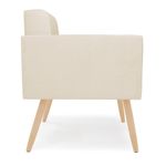 Você gosta de colecionar vários momentos memoráveis com sua família e amigos? Que tal recebê-los, com móveis de altíssima qualidade que só a D'Rossi tem? A Poltrona Elisa é adequada para você! Seu design retrô é a grande tendência do momento. Pode ser utilizada em diversos espaços da casa, em salas, hall de entrada, quartos, cozinhas, varanda, sacada, escritório, dentre outros. Contém as seguintes características: A estrutura é feita de madeira de Eucalipto 100% de reflorestamento, e os Pés Palito Natural, além de serem resistentes e duráveis, suportam em média até 120 kg. Assento, encosto e braços, contém enchimento de espuma D-23 e é estofada em tecido Corino, no tom Branco, que oferece muito conforto e resistência ao sentar, com aquela sensação de maciez e aconchego. Possui também, detalhes de costura no encosto e assento, resultando em um acabamento impecável, conferindo muito mais valor e elegância ao seu espaço. Para complementar a decoração com essa linda poltrona, a dica é utilizar mantas, almofadas ou vasinho de flor. E pronto, seu cantinho estará perfeito para descansar e relaxar! Aqui, você encontra várias opções, para que seus amigos e familiares se sintam acolhidos. Garanta já sua Poltrona. Dimensões da Poltrona: Altura total: 82 cm Largura total: 66 cm Profundidade total: 63 cm Altura do encosto: 35 cm Largura do assento: 46 cm Profundidade do assento: 47 cm Altura do chão ao assento: 47 cm Espessura do assento: 17 cm Tamanho dos pés: 30 cm Espessura do braço: 10 cm Peso: 13 kg Especificações do Produto Estrutura: Madeira Eucalipto Espuma: D-23 Tecido: Corino Tipo de pés: Pés Palito Natural Peso suportado: Até 120 Kg Garantia: 90 dias contra defeito de fabricação Montagem: O produto vai montado, apenas rosquear os pés Instruções de limpeza: Utilizar um pano limpo e levemente úmido Você irá receber: 01 Poltrona - Entregue em: 01 Volume Observações Relevantes - Todos os produtos vão embalados com total segurança; - As cores dos produtos podem sofrer alterações dependendo do seu monitor; - Para futuras compras, não garantimos a mesma tonalidade de cor, pois existe variação a cada lote do fabricante do tecido; - As imagens são meramente ilustrativas, não acompanham objetos de decoração e eletros; - Confira as dimensões do produto no momento da compra e certifique-se de que passará normalmente por escadas, elevadores, portas e corredores; - Importante: Por se tratar de estofado as medidas podem ter uma pequena variação em até 3 cm; - Não nos responsabilizamos no ato da entrega por montagens, desmontagens, instalações de produtos; - Não nos responsabilizamos no ato da entrega por subir escadas, elevadores, nem utilização de guinchos ou equipamentos similares para acesso a pisos superiores em apartamentos; - A entrega do produto é realizada em todo território nacional, até onde as rodovias alcançam, entregas fluviais ou aéreas devem ser cotadas a parte; - Observando as orientações acima, evita-se futuros desagrados ou imprevistos com a entrega do produto. Havendo despesas adicionais, serão de responsabilidade do cliente;