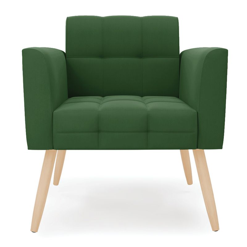 Você gosta de colecionar vários momentos memoráveis com sua família e amigos? Que tal recebê-los, com móveis de altíssima qualidade que só a D'Rossi tem? A Poltrona Elisa é adequada para você! Seu design retrô é a grande tendência do momento. Pode ser utilizada em diversos espaços da casa, em salas, hall de entrada, quartos, cozinhas, varanda, sacada, escritório, dentre outros. Contém as seguintes características: A estrutura é feita de madeira de Eucalipto 100% de reflorestamento, e os Pés Palito Natural, além de serem resistentes e duráveis, suportam em média até 120 kg. Assento, encosto e braços, contém enchimento de espuma D-23 e é estofada em tecido Suede, no tom Verde, que oferece muito conforto e resistência ao sentar, com aquela sensação de maciez e aconchego. Possui também, detalhes de costura no encosto e assento, resultando em um acabamento impecável, conferindo muito mais valor e elegância ao seu espaço. Para complementar a decoração com essa linda poltrona, a dica é utilizar mantas, almofadas ou vasinho de flor. E pronto, seu cantinho estará perfeito para descansar e relaxar! Aqui, você encontra várias opções, para que seus amigos e familiares se sintam acolhidos. Garanta já sua Poltrona. Dimensões da Poltrona: Altura total: 82 cm Largura total: 66 cm Profundidade total: 63 cm Altura do encosto: 35 cm Largura do assento: 46 cm Profundidade do assento: 47 cm Altura do chão ao assento: 47 cm Espessura do assento: 17 cm Tamanho dos pés: 30 cm Espessura do braço: 10 cm Peso: 13 kg Especificações do Produto Estrutura: Madeira Eucalipto Espuma: D-23 Tecido: Suede Tipo de pés: Pés Palito Natural Peso suportado: Até 120 Kg Garantia: 90 dias contra defeito de fabricação Montagem: O produto vai montado, apenas rosquear os pés Instruções de limpeza: Utilizar um pano limpo e levemente úmido Você irá receber: 01 Poltrona - Entregue em: 01 Volume Observações Relevantes - Todos os produtos vão embalados com total segurança; - As cores dos produtos podem sofrer alterações dependendo do seu monitor; - Para futuras compras, não garantimos a mesma tonalidade de cor, pois existe variação a cada lote do fabricante do tecido; - As imagens são meramente ilustrativas, não acompanham objetos de decoração e eletros; - Confira as dimensões do produto no momento da compra e certifique-se de que passará normalmente por escadas, elevadores, portas e corredores; - Importante: Por se tratar de estofado as medidas podem ter uma pequena variação em até 3 cm; - Não nos responsabilizamos no ato da entrega por montagens, desmontagens, instalações de produtos; - Não nos responsabilizamos no ato da entrega por subir escadas, elevadores, nem utilização de guinchos ou equipamentos similares para acesso a pisos superiores em apartamentos; - A entrega do produto é realizada em todo território nacional, até onde as rodovias alcançam, entregas fluviais ou aéreas devem ser cotadas a parte; - Observando as orientações acima, evita-se futuros desagrados ou imprevistos com a entrega do produto. Havendo despesas adicionais, serão de responsabilidade do cliente;