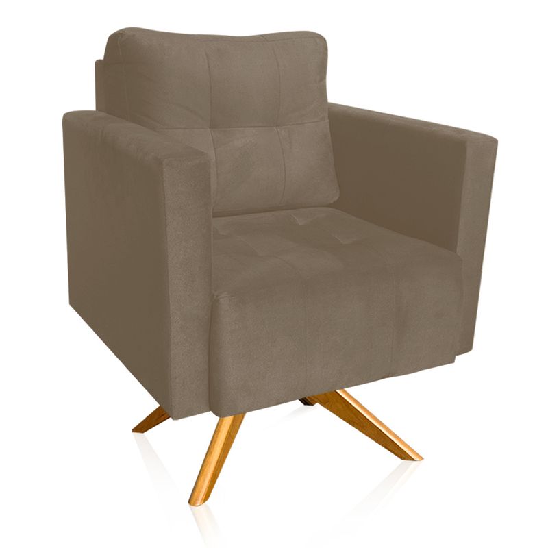 MóveisSala de EstarPoltronasPoltrona DecorativaPoltrona Giratória Livia Suede Marrom Rato Base de Madeira MA30 - D'Rossi