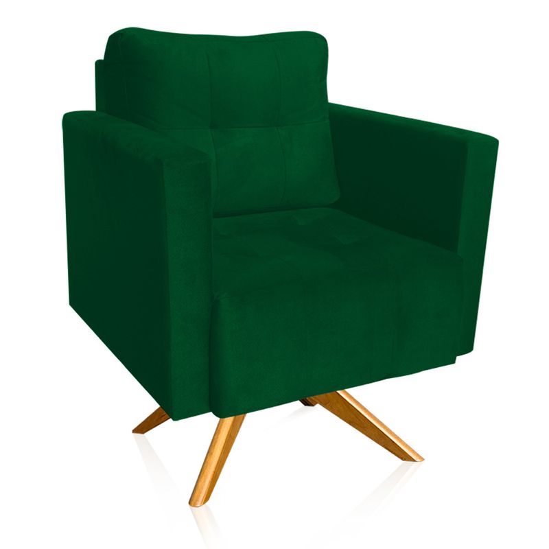 A poltrona Lívia é para aqueles que buscam comodidade e sofisticação. Ela promove um ótimo nível de conforto, graças ao seu design minimalista e aconchegante. Sem dúvidas ela dará aquele toque refinado que seu ambiente precisa! Uma dica legal é decorá-la com almofadas de diferentes tons e estilos, que mais combinem com sua personalidade, criando um ambiente ainda mais incrível! Sua estrutura é produzida em Base giratória de Madeira MA30 e percintas elásticas. Possui também preenchimento em espuma de excelente qualidade, densidade D-23 no assento e nos braços, no encosto de fibra siliconada. Conta com revestimento em Suede no tom Verde, um tecido fácil de limpar, que confere maior resistência, maciez e durabilidade à peça. Que tal levá-la para sua casa ou escritório! Escolha a Poltrona Lívia e dê vida ao seu ambiente com conforto e elegância. Dimensões Poltrona: Altura total: 85 cm Largura total: 67 cm Profundidade total: 66 cm Altura do encosto: 42 cm Largura do assento: 50 cm Profundidade do assento: 47 cm Altura do chão ao assento: 45 cm Espessura do assento: 23 cm Altura do chão ao braço: 65 cm Altura interna do braço: 23 cm Espessura do braço: 8 cm Peso: 18 kg Especificações do Produto: Estrutura: Madeira Eucalipto Espuma: D-23 Tecido: Suede Tipo de pés: Base de Madeira MA30 Peso suportado: Até 120 Kg Garantia: 90 dias contra defeito de fabricação Montagem: O produto vai montado, apenas parafusar a base Instruções de limpeza: Utilizar um pano limpo e levemente úmido Você irá receber: 02 Volumes com 01 Poltrona e 01 Base Giratória Observações Relevantes - Todos os produtos vão embalados com total segurança; - As cores dos produtos podem sofrer alterações dependendo do seu monitor; - Para futuras compras, não garantimos a mesma tonalidade de cor, pois existe variação a cada lote do fabricante do tecido; - As imagens são meramente ilustrativas, não acompanham objetos de decoração e eletros; - Confira as dimensões do produto no momento da compra e certifique-se de que passará normalmente por escadas, elevadores, portas e corredores; - Importante: Por se tratar de estofado as medidas podem ter uma pequena variação em até 3 cm; - Não nos responsabilizamos no ato da entrega por montagens, desmontagens, instalações de produtos; - Não nos responsabilizamos no ato da entrega por subir escadas, elevadores, nem utilização de guinchos ou equipamentos similares para acesso a pisos superiores em apartamentos; - A entrega do produto é realizada em todo território nacional, até onde as rodovias alcançam, entregas fluviais ou aéreas devem ser cotadas a parte; - Observando as orientações acima, evita-se futuros desagrados ou imprevistos com a entrega do produto. Havendo despesas adicionais, serão de responsabilidade do cliente;