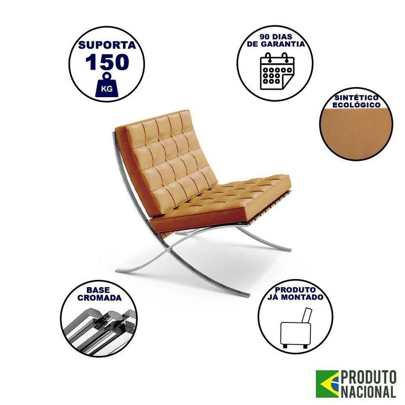 Poltrona Para Leitura Barcelona Com Puff Courissimo Cromada - CarameloPoltronas são sempre uma boa ideia para aqueles espaços que precisam de um reforço na hora de recepcionar com aconchego e estilo, melhor ainda com um Puff.O modelo Barcelona, por exemplo, é estofado e conta com os apoios certos para todas as partes do corpo, além de ter um design todo elegante, com formato perfeito para abraçar as suas costas e proporcionar momentos de muita comodidade.CARACTERÍSTICASTipo: ConjuntoModelo: BarcelonaCor: CarameloDIMENSÕES POLTRONAAltura: 79cmLargura: 75cmComprimento: 78cmDIMENSÕES PUFFAltura: 38cmLargura: 58cmComprimento: 61cmOBSERVAÇÃOMontagem: Necessário apenas encaixar o assento na estrutura.Limpeza: utilizar um pano macio levemente úmido.GARANTIA: 90 diasAS IMAGENS SÃO MERAMENTE ILUSTRATIVAS E PODEM SOFRER VARIAÇÕES DE COR E PEQUENOS DETALHES DE ACORDO COM O SEU MONITOR, ILUMINAÇÃO DO AMBIENTE E ATÉ MESMO A SUA PERCEPÇÃO VISUAL.Poltrona para Leitura Barcelona com Puff Courissimo Cromada - Caramelo