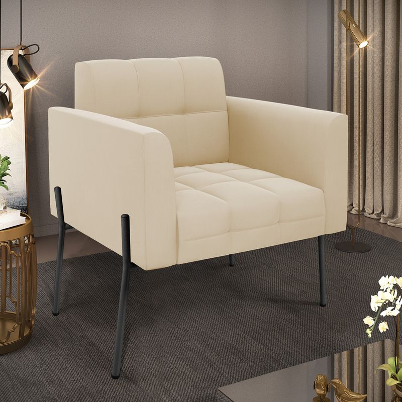 Você gosta de colecionar vários momentos memoráveis com sua família e amigos? Que tal recebê-los, com móveis de altíssima qualidade que só a D'Rossi tem? A Poltrona Elisa é adequada para você! Seu design retrô é a grande tendência do momento. Pode ser usada em diversos espaços da casa, em salas, hall de entrada, quartos, cozinhas, varanda, sacada, escritório, dentre outros. Contém as seguintes características: A estrutura é feita Madeira de Eucalipto 100% de reflorestamento, Pés de Ferro Preto que além de ser resistente e durável, suporta em média até 120 kg. Assento, encosto e braços, contém enchimento de espuma D-23 e é estofada em tecido Suede no tom Verde, que oferece muito conforto e resistência ao sentar, com aquela sensação de maciez e aconchego. Possui também, detalhes de costura no encosto e assento, resultando em um acabamento impecável, conferindo muito mais valor e elegância ao seu espaço. Para complementar a decoração com essa linda poltrona, a dica é utilizar mantas, almofadas ou vasinho de flor. E pronto, seu cantinho estará perfeito para descansar e relaxar! Aqui, você encontra várias opções, para que seus amigos e familiares se sintam acolhidos. Garanta já sua Poltrona.Dimensões da Poltrona: Altura total: 81 cm Largura total: 76 cm Profundidade total: 64 cm Altura do encosto: 36 cm Largura do assento: 47 cm Profundidade do assento: 48 cm Altura do chão ao assento: 45 cm Espessura do assento: 18 cm Tamanho dos pés: 30 cm Espessura do braço: 9 cm Peso: 18 kg Especificações do Produto Estrutura: Madeira Eucalipto Espuma: D-23 Tecido: Suede Tipo de pés: Pé de Ferro Preto Peso suportado: Até 120 Kg Garantia: 90 dias contra defeito de fabricação Montagem: O produto vai montado, apenas parafusar a base Instruções de limpeza: Utilizar um pano limpo e levemente úmido Você irá receber: 01 Poltrona - Entregue em: 01 Volume Observações Relevantes - Todos os produtos vão embalados com total segurança; - As cores dos produtos podem sofrer alterações dependendo do seu monitor; - Para futuras compras, não garantimos a mesma tonalidade de cor, pois existe variação a cada lote do fabricante do tecido; - As imagens são meramente ilustrativas, não acompanham objetos de decoração e eletros; - Confira as dimensões do produto no momento da compra e certifique-se de que passará normalmente por escadas, elevadores, portas e corredores; - Importante: Por se tratar de estofado as medidas podem ter uma pequena variação em até 3 cm; - Não nos responsabilizamos no ato da entrega por montagens, desmontagens, instalações de produtos; - Não nos responsabilizamos no ato da entrega por subir escadas, elevadores, nem utilização de guinchos ou equipamentos similares para acesso a pisos superiores em apartamentos; - A entrega do produto é realizada em todo território nacional, até onde as rodovias alcançam, entregas fluviais ou aéreas devem ser cotadas a parte; - Observando as orientações acima, evita-se futuros desagrados ou imprevistos com a entrega do produto. Havendo despesas adicionais, serão de responsabilidade do cliente;