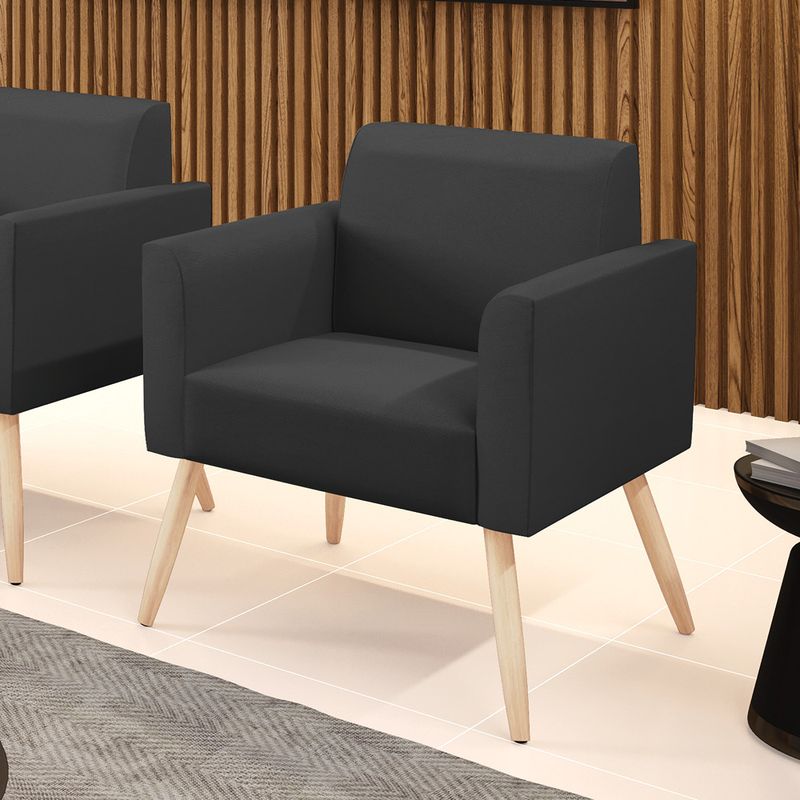 Todo mundo gosta de um ambiente bem decorado, e se for novidade melhor ainda não é mesmo? A D'Rossi, além de entregar beleza, qualidade e confiança aos clientes, ela dispõe das melhores opções em produtos, disponíveis no mercado! Se você quer um produto sofisticado, opte pela Poltrona Marisa. Ela dispõe de um tom lindo no Preto, uma cor leve, neutra e delicada que combina com qualquer estilo de decoração. Esta mobília fica perfeita na sala, escritório, quarto, varanda coberta e onde mais preferir! Sua estrutura é feita em madeira reforçada de eucalipto proveniente de reflorestamento. No assento/encosto contém um revestimento no tecido Corino, com estofamento em espuma prorelax D-23, garantindo maior conforto ao usuário. A sustentação da peça é dada pelos Pés Palito Castanho, garantindo uma resistência melhor, para relaxar o dia todo com mais comodidade. A Poltrona Marisa é ideal, para dar aquele realce que seu ambiente precisa. Tenho certeza que, esse móvel é a melhor compra que você irá fazer. Garanta já sua poltrona e se acomode da melhor maneira possível! Dimensões da Poltrona: Altura total: 81 cm Largura total: 64 cm Profundidade total: 64 cm Altura do encosto: 36 cm Largura do assento: 47 cm Profundidade do assento: 48 cm Altura do chão ao assento: 45 cm Espessura do assento: 18 cm Tamanho dos pés: 30 cm Espessura do braço: 9 cm Peso: 14 kg Especificações do Produto Estrutura: Madeira Eucalipto Espuma: D-23 Tecido: Corino Tipo de pés: Pés Palito Natural Peso suportado: Até 120 Kg Garantia: 90 dias contra defeito de fabricação Montagem: O produto vai montado, apenas rosquear os pés Instruções de limpeza: Utilizar um pano limpo e levemente úmido Você irá receber: 01 Poltrona - Entregue em: 01 Volume Observações Relevantes - Todos os produtos vão embalados com total segurança; - As cores dos produtos podem sofrer alterações dependendo do seu monitor; - Para futuras compras, não garantimos a mesma tonalidade de cor, pois existe variação a cada lote do fabricante do tecido; - As imagens são meramente ilustrativas, não acompanham objetos de decoração e eletros; - Confira as dimensões do produto no momento da compra e certifique-se de que passará normalmente por escadas, elevadores, portas e corredores; - Importante: Por se tratar de estofado as medidas podem ter uma pequena variação em até 3 cm; - Não nos responsabilizamos no ato da entrega por montagens, desmontagens, instalações de produtos; - Não nos responsabilizamos no ato da entrega por subir escadas, elevadores, nem utilização de guinchos ou equipamentos similares para acesso a pisos superiores em apartamentos; - A entrega do produto é realizada em todo território nacional, até onde as rodovias alcançam, entregas fluviais ou aéreas devem ser cotadas a parte; - Observando as orientações acima, evita-se futuros desagrados ou imprevistos com a entrega do produto. Havendo despesas adicionais, serão de responsabilidade do cliente;