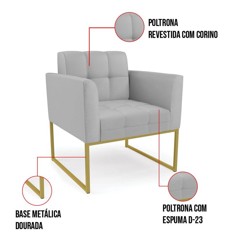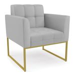 A Poltrona Elisa revestida em Sintético Cinza é adequada para quem busca um ambiente refinado e funcional. Seu design destaca a estrutura em madeira de eucalipto, reconhecida pela resistência e durabilidade, aliada à espuma D-26 que garante aconchego equilibrado no uso diário. O revestimento é realçado pela costura em formato quadriculado e pelo detalhe em matelassê, que conferem acabamento refinado. Os pés de aço dourado traz um contraste contemporâneo, valorizando o visual do conjunto e oferecendo excelente estabilidade. Com encosto e assento fixos, a Elisa proporciona sustentação firme e ergonomia perfeita para longas conversas à mesa. Suporta até 120 kg, sendo ideal para uso residencial ou corporativo. Cada detalhe foi pensado para combinar charme e funcionalidade em um único móvel. Dimensões do Produto: Altura Total: 81 cm Largura Total: 76 cm Profundidade Total: 64 cm Altura do Encosto: 36 cm Largura do Assento: 47 cm Profundidade do Assento: 48 cm Altura do chão ao Assento: 45 cm Espessura do Assento: 18 cm Altura total dos pés: 27 cm Altura do chão ao braço: 65 cm Altura interna do braço: 20 cm Espessura do braço: 9 cm Peso: 18 kg Especificações do Produto: Estrutura: Madeira de Eucalipto Material do Estofamento: Assento Espuma D-26 (alta densidade) Braço e encosto D-23 Revestimento: SintéticoPeso Máximo Suportado: Até 120 Kg Tipo de Pés: Pé de Aço Dourado Material/Acabamento dos Pés: Aço Carbono com Pintura eletrostática Inclui Almofada Extra: Não Tipo de Encosto: Fixo Tipo de Assento: Fixo Com Apoio de Pés: Não Com Altura Ajustável: Não É Reclinável: Não É Giratória: Não Diferenciais: Design moderno; Costura em formato quadriculado no encosto e assento; Detalhe na costura em Matelassê. Complexidade da Montagem: Baixa Montagem: O produto vai montado, apenas parafusar os pés Garantia: 90 dias contra defeito de fabricação Instruções de Limpeza: Utilizar um pano limpo e levemente úmido Quantidade de Volumes: 1 Caixa Medida das Embalagens: Caixa 1: 72 cm x 66 cm x 58 cm Peso das Embalagens: 20 kg Entrega: É feita somente até o térreo ou portaria. Confira sempre as medidas das embalagens para assegurar que o produto passe por portas e escadas do local.