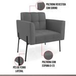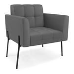 A Poltrona Elisa revestida em Sintético Grafite é adequada para quem busca um ambiente refinado e funcional. Seu design destaca a estrutura em madeira de eucalipto, reconhecida pela resistência e durabilidade, aliada à espuma D-26 que garante aconchego equilibrado no uso diário. O revestimento é realçado pela costura em formato quadriculado e pelo detalhe em matelassê, que conferem acabamento refinado. Os pés de aço preto traz um contraste contemporâneo, valorizando o visual do conjunto e oferecendo excelente estabilidade. Com encosto e assento fixos, a Elisa proporciona sustentação firme e ergonomia perfeita para longas conversas à mesa. Suporta até 120 kg, sendo ideal para uso residencial ou corporativo. Cada detalhe foi pensado para combinar charme e funcionalidade em um único móvel. Dimensões do Produto: Altura Total: 81 cm Largura Total: 76 cm Profundidade Total: 64 cm Altura do Encosto: 36 cm Largura do Assento: 47 cm Profundidade do Assento: 48 cm Altura do chão ao Assento: 45 cm Espessura do Assento: 18 cm Altura total dos pés: 27 cm Altura do chão ao braço: 65 cm Altura interna do braço: 20 cm Espessura do braço: 9 cm Peso: 18 kg Especificações do Produto: Estrutura: Madeira de Eucalipto Material do Estofamento: Assento Espuma D-26 (alta densidade) Braço e encosto D-23 Revestimento: SintéticoPeso Máximo Suportado: Até 120 Kg Tipo de Pés: Pé de Aço PretoMaterial/Acabamento dos Pés: Aço Carbono com Pintura eletrostática Inclui Almofada Extra: Não Tipo de Encosto: Fixo Tipo de Assento: Fixo Com Apoio de Pés: Não Com Altura Ajustável: Não É Reclinável: Não É Giratória: Não Diferenciais: Design moderno; Costura em formato quadriculado no encosto e assento; Detalhe na costura em Matelassê. Complexidade da Montagem: Baixa Montagem: O produto vai montado, apenas parafusar os pés Garantia: 90 dias contra defeito de fabricação Instruções de Limpeza: Utilizar um pano limpo e levemente úmido Quantidade de Volumes: 1 Caixa Medida das Embalagens: Caixa 1: 72 cm x 66 cm x 58 cm Peso das Embalagens: 20 kg Entrega: É feita somente até o térreo ou portaria. Confira sempre as medidas das embalagens para assegurar que o produto passe por portas e escadas do local.