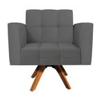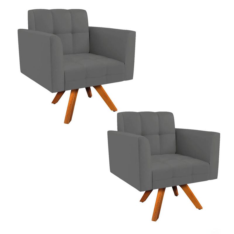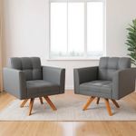 O Kit 2 Poltronas Elisa revestida em Sintético Grafite é adequada para quem busca um ambiente refinado e funcional. Seu design destaca a estrutura em madeira de eucalipto, reconhecida pela resistência e durabilidade, aliada à espuma D-26 que garante aconchego equilibrado no uso diário. O revestimento é realçado pela costura em formato quadriculado e pelo detalhe em matelassê, que conferem acabamento refinado e contemporâneo. A base giratória de madeira realça o estilo do produto e oferece liberdade de movimento, garantindo praticidade no dia a dia. Com encosto e assento fixos, a Elisa proporciona sustentação firme e ergonomia perfeita para longas conversas à mesa. Suporta até 120 kg, sendo ideal para uso residencial ou corporativo. Cada detalhe foi pensado para combinar charme e funcionalidade em um único móvel. Dimensões do Produto: Altura Total: 81 cm Largura Total: 64 cm Profundidade Total: 64 cm Altura do Encosto: 36 cm Largura do Assento: 47 cm Profundidade do Assento: 48 cm Altura do chão ao Assento: 45 cm Espessura do Assento: 18 cm Espessura do braço: 9 cm Altura do chão ao braço: 66 cm Altura interna do braço: 20 cm Peso: 20 kg Especificações do Produto: Estrutura: Madeira de Eucalipto Material do Estofamento: Assento Espuma D-26 (alta densidade) Braço e encosto D-23 Revestimento: Sintético Peso Máximo Suportado: Até 120 Kg Tipo de Pés: Base Giratória MM30 Material/Acabamento da Base: Madeira Maciça ( envernizada) Inclui Almofada Extra: Não Tipo de Encosto: Fixo Tipo de Assento: Fixo Com Apoio de Pés: Não Com Altura Ajustável: Não É Reclinável: Não É Giratória: Sim Diferenciais: Design moderno; Costura em formato quadriculado no encosto e assento; Detalhe na costura em Matelassê. Complexidade da Montagem: Baixa Montagem: O produto vai montado, apenas parafusar a base Garantia: 90 dias contra defeito de fabricação Instruções de Limpeza: Utilizar um pano limpo e levemente úmido Quantidade de Volumes: 2 Caixas Medida das Embalagens: Caixa 1: 83 cm x 80 cm x 67 cm ; Caixa 2: 83 cm x 80 cm x 67 cm Peso das Embalagens: 44 kg Entrega: É feita somente até o térreo ou portaria. Confira sempre as medidas das embalagens para assegurar que o produto passe por portas e escadas do local.