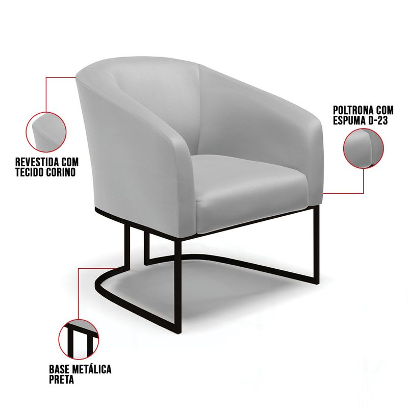 O Kit 2 Poltronas Stella em Sintético Cinza une elegância moderna e conforto acolhedor, ideal para quem busca um ambiente refinado e funcional. Seu design destaca a estrutura em madeira de eucalipto, reconhecida pela resistência e durabilidade, aliada à espuma D-26 que garante conforto equilibrado no uso diário. O revestimento adiciona textura suave e toque aconchegante, criando uma atmosfera sofisticada e convidativa. A base metálica com acabamento preto traz um contraste contemporâneo, valorizando o visual do conjunto e oferecendo excelente estabilidade. Com encosto e assento fixos, a Stella proporciona sustentação firme e ergonomia perfeita para longas conversas à mesa. Suporta até 120 kg, sendo ideal para uso residencial ou corporativo. Cada detalhe foi pensado para combinar charme, funcionalidade e resistência em um único móvel. Dimensões do Produto: Altura Total: 81 cm Largura Total: 68 cm Profundidade Total: 60 cm Altura do Encosto: 40 cm Largura do Assento: 45 cm Profundidade do Assento: 45 cm Altura do chão ao Assento: 45 cm Espessura do Assento: 15 cm Altura total dos pés: 30 cm Altura do chão ao braço: 73 cm Espessura do braço: 10 cm Altura interna do braço: 28 cm Peso: 21 kg Especificações do Produto: Estrutura: Madeira de Eucalipto e MDF Material do Estofamento: Assento Espuma D-26 (alta densidade) Braço e encosto D-23 Revestimento: Sintético Peso Máximo Suportado: Até 120 Kg Tipo de Pés: Base Industrial Preta Material/Acabamento dos Pés: Aço Carbono com Pintura eletrostática Inclui Almofada Extra: Não Tipo de Encosto: Fixo Tipo de Assento: Fixo, percintas elásticas Com Apoio de Pés: Não Com Altura Ajustável: Não É Reclinável: Não É Giratória: Não Diferenciais: Design sofisticado e aconchegante; Combinação perfeita em qualquer ambiente; Estrutura reforçada em madeira de eucalipto. Complexidade da Montagem: Baixa Montagem: O produto vai montado, apenas parafusar a base Garantia: 90 dias contra defeito de fabricação Instruções de Limpeza: Utilizar um pano limpo e levemente úmido Quantidade de Volumes: 1 Caixa Medida das Embalagens: Caixa 1: 83 cm x 80 cm x 67 cm Peso das Embalagens: 46 kg Entrega: É feita somente até o térreo ou portaria. Confira sempre as medidas das embalagens para assegurar que o produto passe por portas e escadas do local.