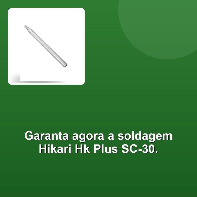 Ponta Fenda Ferro De Solda Hikari Hk Plus Sc-30Aqui está a descrição do produto:Ponta Fenda Para Ferro De Solda Hikari Hk Plus Sc-30 é o resultado de um rigoroso processo de seleção e controle, que garante que cada detalhe seja perfeito. Nossa equipe se compromete em entregar produtos que são não apenas funcionais, mas também inovadores e duráveis.Nossa ponta fenda é fabricada com materiais da mais alta qualidade, aplicando as melhores práticas do setor. Isso significa que você receberá um produto que não apenas cumpre seu propósito, mas também supera suas expectativas.Com 4 peças na embalagem, você terá tudo que precisa para realizar seus projetos com confiança. Nossa paixão pela excelência é o que nos distingue. Cada membro da nossa equipe compartilha o mesmo objetivo: proporcionar a você produtos que você possa confiar e se orgulhar de utilizar.Acreditamos que a qualidade não é apenas uma característica, mas um reflexo do nosso compromisso com a satisfação de nossos clientes. Por isso, você pode ter certeza de que está comprando um produto que é digno de sua confiança.Aqui está a descrição do produto:Ponta Fenda Para Ferro De Solda Hikari Hk Plus Sc-30 é o resultado de um rigoroso processo de seleção e controle, que garante que cada detalhe seja perfeito. Nossa equipe se compromete em entregar produtos que são não apenas funcionais, mas também inovadores e duráveis.Nossa ponta fenda é fabricada com materiais da mais alta qualidade, aplicando as melhores práticas do setor. Isso significa que você receberá um produto que não apenas cumpre seu propósito, mas também supera suas expectativas.Com 4 peças na embalagem, você terá tudo que precisa para realizar seus projetos com confiança. Nossa paixão pela excelência é o que nos distingue. Cada membro da nossa equipe compartilha o mesmo objetivo: proporcionar a você produtos que você possa confiar e se orgulhar de utilizar.Acreditamos que a qualidade não é apenas uma característica, mas um reflexo do nosso compromisso com a satisfação de nossos clientes. Por isso, você pode ter certeza de que está comprando um produto que é digno de sua confiança.