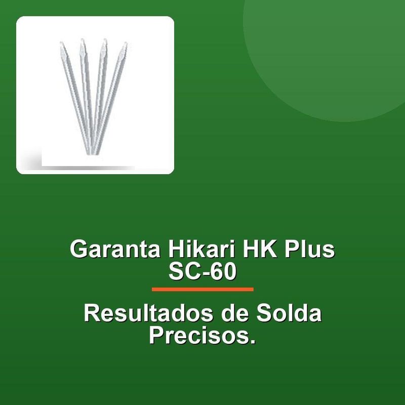 Ponta Fenda Ferro De Solda Hikari Hk Plus Sc-60 C/ 4 PeçasDesbloqueie o Poder da Soldagem com a Ponta Fenda Para Ferro De Solda Hikari HK Plus SC-60!Nossa ponta fenda é o resultado de um rigoroso processo de seleção dos melhores fornecedores, para oferecer a você o produto de mais alta qualidade. Os recursos utilizados e o empenho da nossa equipe garantem que cada item seja entregue rapidamente e de forma eficiente.Com a Hikari HK Plus SC-60, você pode contar com uma performance excepcional em sua soldagem. A ponta fenda é projetada para fornecer resultados consistentes e de alta qualidade, tornando sua experiência de soldagem mais eficiente e produtiva.O que nos diferencia é a nossa paixão pela excelência. Cada membro da nossa equipe compartilha o mesmo objetivo: proporcionar a você produtos que você possa confiar e se orgulhar de utilizar. Acreditamos que a qualidade não é apenas uma característica, mas um reflexo do nosso compromisso com a satisfação de nossos clientes.Desbloqueie o Poder da Soldagem com a Ponta Fenda Para Ferro De Solda Hikari HK Plus SC-60!Nossa ponta fenda é o resultado de um rigoroso processo de seleção dos melhores fornecedores, para oferecer a você o produto de mais alta qualidade. Os recursos utilizados e o empenho da nossa equipe garantem que cada item seja entregue rapidamente e de forma eficiente.Com a Hikari HK Plus SC-60, você pode contar com uma performance excepcional em sua soldagem. A ponta fenda é projetada para fornecer resultados consistentes e de alta qualidade, tornando sua experiência de soldagem mais eficiente e produtiva.O que nos diferencia é a nossa paixão pela excelência. Cada membro da nossa equipe compartilha o mesmo objetivo: proporcionar a você produtos que você possa confiar e se orgulhar de utilizar. Acreditamos que a qualidade não é apenas uma característica, mas um reflexo do nosso compromisso com a satisfação de nossos clientes.