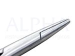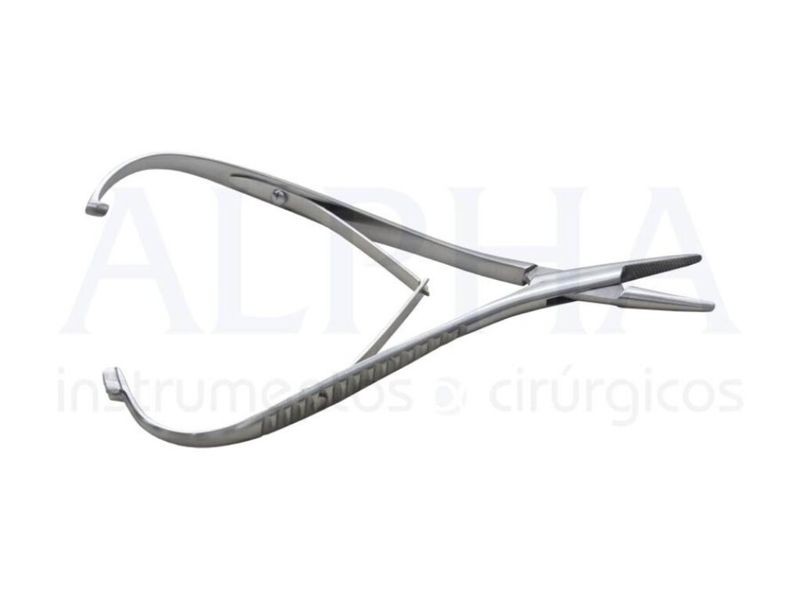 Porta Agulha Mathieu 14cm Especial. Instrumento Cirúrgico articulado não cortante. Produzido em Aço Inoxidável. Utilizado para fixação da agulha durante a sutura e para colocação e retirada de borrachinha em ortodontia, entre outras funções. Denominado especial pois é extremamente macio e durável.
