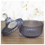 Porta Algodão E Cotonete Vidro 12cm - Design moderno. Vidro. Acabamento excelente, um detalhe de concha, lindo. Combina com qualquer ambiente. Cor: Roxo Medidas: Altura: 12cm / Diâmetro: 10,5cm Características Gerais do Produto: • Material: Vidro • Cor: Branco Garantia: • Garantia de fábrica - 1 Mês