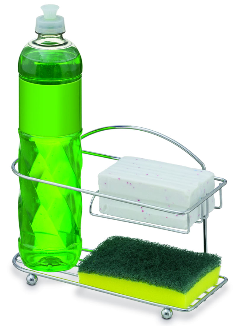 Organizador de pia, fabricado em aço cromado, material de alta durabilidade e resistente a corrosão. Item ideal para organizar sua pia com detergente, sabão e esponja, para estar fácil sempre que for necessário utiliza-los. Pode ser apoiado diretamente na pia, ou fixado na parede.