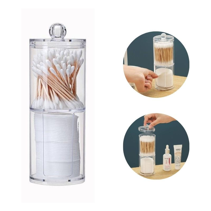 Porta Disco de Algodão e Cotonetes Pote Organizador Multiuso ===================================== Desenvolvido para trazer praticidade e elegância ao seu dia a dia, esse organizador é ideal para armazenar discos de algodão e cotonetes de forma higiênica, funcional e acessível. Com design moderno, corpo transparente e tampa com puxador, ele facilita a visualização dos itens e protege contra poeira e umidade. Seu compartimento duplo permite armazenar diferentes produtos em um só lugar, sendo perfeito para banheiros, penteadeiras, consultórios, salões de beleza e outros ambientes que exigem organização e higiene. Fabricado em plástico resistente, é durável, leve e fácil de limpar. Antes do primeiro uso, recomenda-se lavar e secar o produto ===================================== Contém: 01 Pote Organizador Especificações: - Material: Plástico - Medida: 17cm x 07cm - Cor: Transparente - Peso: 85 gramas ===================================== Devido à diferença entre monitores e iluminação diferentes, pode haver variação na tonalidade apresentada no anúncio. Medidas muito aproximadas.