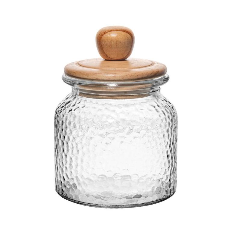 Porta Mantimento de Vidro Martelado com Tampa de Bambu 640mlO Porta Mantimento de Vidro Martelado com Tampa de Bambu da Wolff é uma peça encantadora e funcional para a sua cozinha, oferecendo estilo e praticidade no armazenamento dos seus alimentos.Design ExclusivoO vidro martelado confere uma estética única e sofisticada ao porta mantimento, adicionando um toque de elegância à sua cozinha.Tampa de BambuA tampa de bambu oferece um fechamento seguro e hermético, mantendo os alimentos frescos por mais tempo e protegidos da umidade e contaminação.Capacidade IdealCom capacidade de 700ml, é perfeito para armazenar uma variedade de alimentos, como grãos, cereais, açúcar, café e outros ingredientes essenciais da sua despensa.Praticidade e EstiloAlém de funcional, o design elegante do porta mantimento proporciona um destaque decorativo na sua cozinha, complementando diversos estilos de decoração.Mantenha seus alimentos organizados e frescos com o Porta Mantimento de Vidro Martelado com Tampa de Bambu da Wolff.Wolff. A melhor experiência em receber, servir e decorar!Contém: 1 Porta MantimentoLava Louça: NãoMicroondas: NãoForno: NãoFogão: NãoFreezer: NãoMedidas Produto: Altura 15,00cm x Largura 11,00cm x Comprimento 11,00cmPeso: 0,43KgCor: IncolorMaterial: VidroLavar com detergente neutro, esponja macia e secar imediatamente.