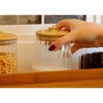 Porta Mantimento de Vidro Wolff Classic com Tampa 650mlMantenha seus mantimentos frescos e organizados com o Porta Mantimento de Vidro Borossilicato com Tampa de Bambu Classic da Wolff. Este elegante recipiente combina funcionalidade com estilo, oferecendo uma solução prática para armazenar e exibir seus alimentos.Qualidade SuperiorFabricado em vidro borossilicato de alta qualidade, o Porta Mantimento é resistente a altas temperaturas e proporciona uma vedação hermética, mantendo seus alimentos frescos por mais tempo.Design EleganteCom sua tampa de bambu, o recipiente adiciona um toque de elegância natural à sua cozinha ou despensa, combinando perfeitamente com qualquer decoração.Capacidade IdealCom capacidade para 650ml, é perfeito para armazenar uma variedade de mantimentos, como grãos, arroz, cereais, açúcar, café e muito mais, mantendo-os organizados e acessíveis.Versatilidade PráticaAlém de sua função de armazenamento, o Porta Mantimento também pode ser usado para servir alimentos em ocasiões especiais, adicionando charme e praticidade à sua mesa.Mantenha sua despensa em ordem e seus mantimentos frescos com o Porta Mantimento de Vidro Borossilicato com Tampa de Bambu Classic da Wolff.Wolff. A melhor experiência em receber, servir e decorar!Contém: 1 Porta MantimentoLava Louça: NãoMicroondas: NãoForno: NãoFogão: NãoFreezer: NãoMedidas Produto: Altura 11,50cm x Largura 10,00cm x Comprimento 8,50cmPeso: 0,10KgCor: IncolorMaterial: Vidro BorossilicatoLavar com detergente neutro, esponja macia e secar imediatamente.