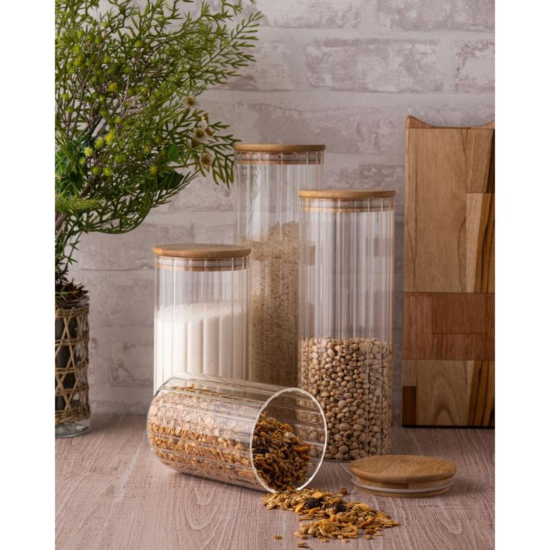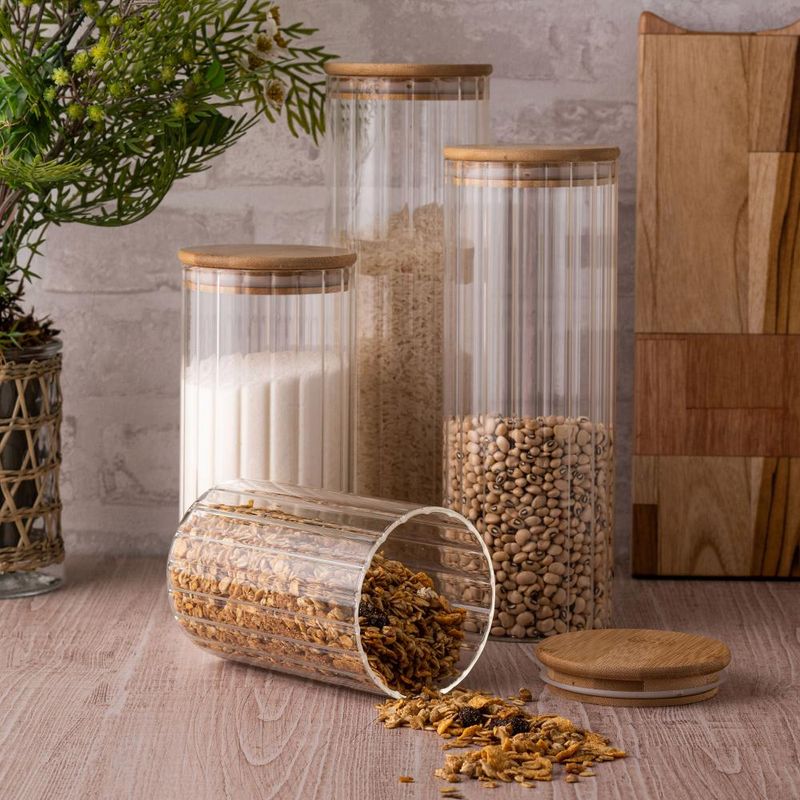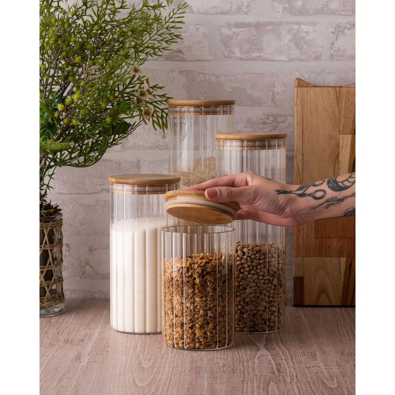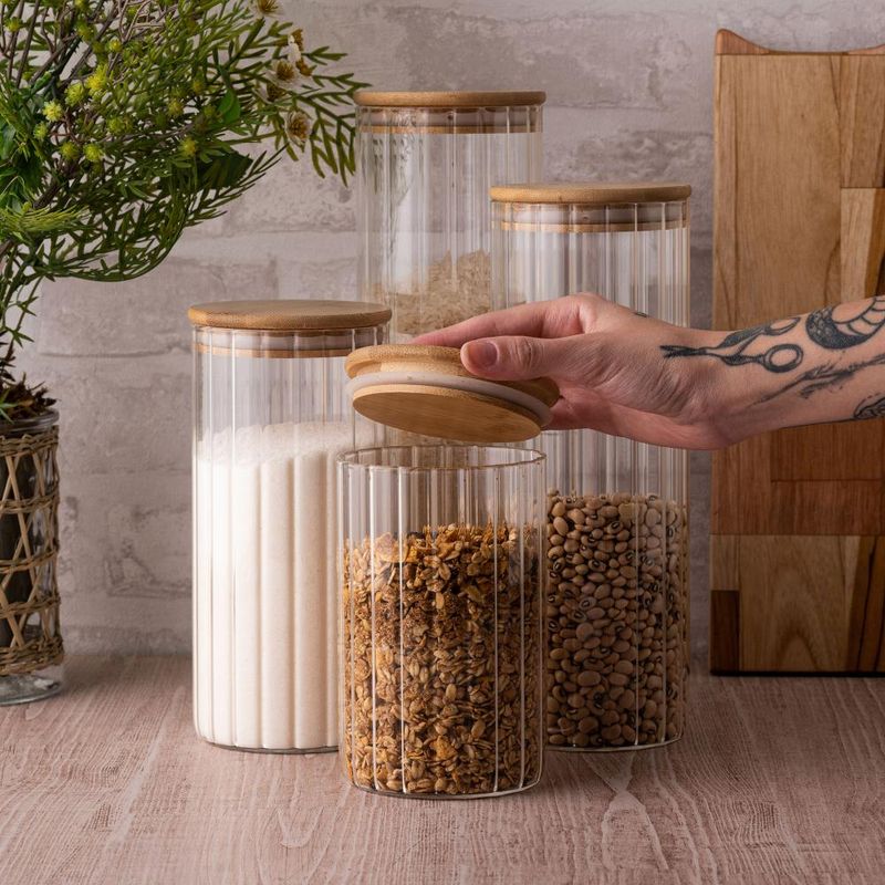 Porta Mantimento Wolff de Vidro Borossilicato e Tampa 1,1LPorta Mantimento de Vidro Borossilicato com Tampa de Bambu 1,1L - WolffO Porta Mantimento de Vidro Borossilicato com Tampa de Bambu de 1,1 litros da Wolff é uma adição elegante e prática para a sua cozinha. Com uma capacidade de 1,1 litros, este porta mantimento oferece espaço suficiente para armazenar uma variedade de alimentos, mantendo-os frescos e acessíveis.Design ClássicoApresentando um design clássico e atemporal, este porta mantimento complementa perfeitamente qualquer estilo de cozinha. O vidro borossilicato transparente permite uma fácil visualização do conteúdo, enquanto a tampa de bambu adiciona um toque natural e sofisticado.Tampa de Bambu SustentávelAlém de sua beleza estética, a tampa de bambu é uma escolha sustentável. O bambu é uma matéria-prima renovável, garantindo durabilidade e resistência ao produto, ao mesmo tempo em que promove a sustentabilidade ambiental.Capacidade IdealCom capacidade de 1,1 litros, este porta mantimento é perfeito para armazenar uma variedade de alimentos, como grãos, massas, açúcar, café e muito mais. Sua capacidade generosa oferece praticidade para o dia a dia na cozinha.Fácil de Utilizar e LimparA tampa de bambu se ajusta perfeitamente ao recipiente, proporcionando um fechamento hermético que mantém os alimentos frescos por mais tempo. Além disso, o vidro borossilicato é fácil de limpar e resistente a manchas, garantindo uma manutenção simples e rápida.Toque de SofisticaçãoAlém de sua funcionalidade, este porta mantimento adiciona um toque de sofisticação à sua cozinha. Seu design elegante e acabamento de alta qualidade elevam o ambiente, tornando-o um destaque na decoração.O Porta Mantimento de Vidro Borossilicato com Tampa de Bambu 1,1L da Wolff é a escolha ideal para quem busca praticidade e estilo na organização dos alimentos.Wolff. A melhor experiência em receber, servir e decorar!Contém: 1 Porta MantimentoLava Louça: NãoMicroondas: NãoForno: NãoFogão: NãoFreezer: NãoMedidas Produto: Altura 25,00cm x Largura 9,50cm x Comprimento 9,50cmPeso: 0,39KgCor: IncolorMaterial: Vidro BorossilicatoLavar com detergente neutro, esponja macia e secar imediatamente. Não utilizar outros produtos químicos.