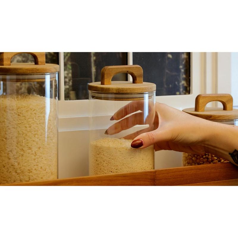 Porta Mantimento Wolff de Vidro com Tampa de Acácia 1LO Porta Mantimento de Vidro Borossilicato com Tampa de Acácia da Wolff oferece uma solução elegante e funcional para armazenar seus alimentos com segurança e estilo.Qualidade SuperiorFabricado com vidro borossilicato de alta qualidade, o porta mantimento é durável e resistente a choques térmicos, garantindo a segurança dos seus alimentos.Tampa de AcáciaA tampa de acácia oferece um fechamento hermético, mantendo os alimentos frescos por mais tempo e protegidos contra a umidade e contaminação.Grande CapacidadeCom capacidade de 1 litro, é ideal para armazenar uma variedade de alimentos, desde grãos e cereais até açúcar, café e outros ingredientes essenciais.Design EleganteO design sofisticado do porta mantimento adiciona um toque de elegância à sua cozinha, complementando diversos estilos de decoração.Mantenha seus alimentos frescos e sua despensa organizada com o Porta Mantimento de Vidro Borossilicato com Tampa de Acácia da Wolff.Wolff. A melhor experiência em receber, servir e decorar!Contém: 1 Porta MantimentoForno: NãoFogão: NãoMedidas Produto: Altura 18,50cm x Largura 10,00cm x Comprimento 10,00cmPeso: 0,33KgCor: IncolorMaterial: Vidro BorossilicatoLavar com detergente neutro, esponja macia e secar imediatamente.