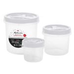 Porta Mantimentos Kit 3 Potes Arrox Feijao Sal Graos Multiuso Tampa Veda Rosca Organizador Armario CozinhaConjunto de 3 Potes de Mantimentos com Tampa Rosqueável – Frescor, Organização e Praticidade na Sua Cozinha!O Conjunto de 3 Potes de Mantimentos é a escolha ideal para quem busca organização, durabilidade e conservação eficiente dos alimentos.Com tampas de rosca que garantem vedação hermética, esses potes mantêm seus alimentos frescos por mais tempo, evitando entrada de ar e protegendo contra umidade e odores.Fabricados em polipropileno de alta qualidade (livre de BPA), são resistentes, seguros e perfeitos para uso no dia a dia. Versáteis, podem ser utilizados no micro-ondas, freezer e lava-louças, tornando sua rotina muito mais prática.Com capacidades , atendem desde pequenas porções até alimentos maiores, sendo ideais para armazenar grãos, farinhas, biscoitos, massas, frutas picadas, refeições e muito mais.Benefícios do ProdutoVedação segura: tampas rosqueáveis que impedem entrada de ar e preservam o frescor.Material e durável: polipropileno livre de BPA, ideal para com alimentos.Multiuso: perfeito para mantimentos secos, alimentos preparados, snacks e sobremesas.Uso versátil: pode ir ao micro-ondas, freezer e lava-louças.Organização prática: potes empilháveis que economizam espaço no armário ou geladeira.Cozinha mais bonita: design moderno e tampas disponíveis em 3 cores elegantes.Especificações TécnicasMaterial: Polipropileno (PP) – BPA FreeCapacidade dos potes300ml – 7,5 cm (Altura) × 8,5 cm (Diâmetro)750ml – 10 cm (Altura) × 10 cm (Diâmetro)1,65 Litro – 14,5 cm (Altura) × 14 cm (Diâmetro)Conteúdo da Embalagem1 Pote 300ml1 Pote 750ml1 Pote 1,65 LitrosObservaçõesPerfeito para armazenar diferentes tipos de alimentos, mantendo tudo organizado, protegido e visível. A vedação rosqueável prolonga a vida útil dos itens armazenados e evita desperdícios.Leve praticidade e elegância para sua cozinhaConjunto de 3 Potes de Mantimentos com Tampa Rosqueável – Frescor, Organização e Praticidade na Sua Cozinha!O Conjunto de 3 Potes de Mantimentos é a escolha ideal para quem busca organização, durabilidade e conservação eficiente dos alimentos.Com tampas de rosca que garantem vedação hermética, esses potes mantêm seus alimentos frescos por mais tempo, evitando entrada de ar e protegendo contra umidade e odores.Fabricados em polipropileno de alta qualidade (livre de BPA), são resistentes, seguros e perfeitos para uso no dia a dia. Versáteis, podem ser utilizados no micro-ondas, freezer e lava-louças, tornando sua rotina muito mais prática.Com capacidades , atendem desde pequenas porções até alimentos maiores, sendo ideais para armazenar grãos, farinhas, biscoitos, massas, frutas picadas, refeições e muito mais.Benefícios do ProdutoVedação segura: tampas rosqueáveis que impedem entrada de ar e preservam o frescor.Material e durável: polipropileno livre de BPA, ideal para com alimentos.Multiuso: perfeito para mantimentos secos, alimentos preparados, snacks e sobremesas.Uso versátil: pode ir ao micro-ondas, freezer e lava-louças.Organização prática: potes empilháveis que economizam espaço no armário ou geladeira.Cozinha mais bonita: design moderno e tampas disponíveis em 3 cores elegantes.Especificações TécnicasMaterial: Polipropileno (PP) – BPA FreeCapacidade dos potes300ml – 7,5 cm (Altura) × 8,5 cm (Diâmetro)750ml – 10 cm (Altura) × 10 cm (Diâmetro)1,65 Litro – 14,5 cm (Altura) × 14 cm (Diâmetro)Conteúdo da Embalagem1 Pote 300ml1 Pote 750ml1 Pote 1,65 LitrosObservaçõesPerfeito para armazenar diferentes tipos de alimentos, mantendo tudo organizado, protegido e visível. A vedação rosqueável prolonga a vida útil dos itens armazenados e evita desperdícios.Leve praticidade e elegância para sua cozinha