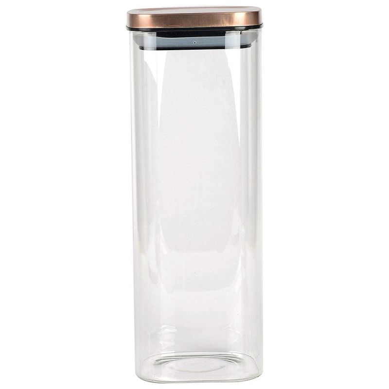 Para armazenar e decorar! O Porta Mantimentos Quadrado de 1,9 L, da Dynasty, é perfeito para armazenar arroz, feijão, farinha, cereais, grãos, massas, biscoitos e outros alimentos, mantendo a despensa, o armário e a bancada sempre organizados. O pote é feito em vidro resistente e possui tampa de metal cobre com vedação de silicone que garante um fechamento hermético, conservando melhor os mantimentos. Com seu design clean, transparente e elegante combina com todos os estilos de cozinha e incrementa a decoração deixando à mostra as cores e texturas dos alimentos.