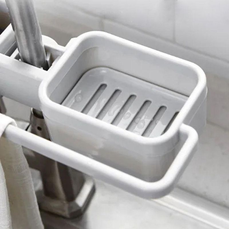 Sto687 - Porta Sabão Bucha Esponja Suporte Para Pia E TorneiraPorta Sabão Bucha Esponja Suporte Para Pia E TorneiraSuporte Multiuso OrganizadorPode ser usado na cozinha para armazenar esponjas, sabão, pano de limpeza e outras utilidades domésticas.Também pode ser utilizado no banheiro para armazenar sabonete, esponja de banho, etc.Especificações:Material: Plástico ABSTamanho: 27 x 10 x 5 cmCor: CinzaAdaptável na TorneiraContém:- 1 Porta Sabão Bucha Esponja Suporte Para Pia E Torneira