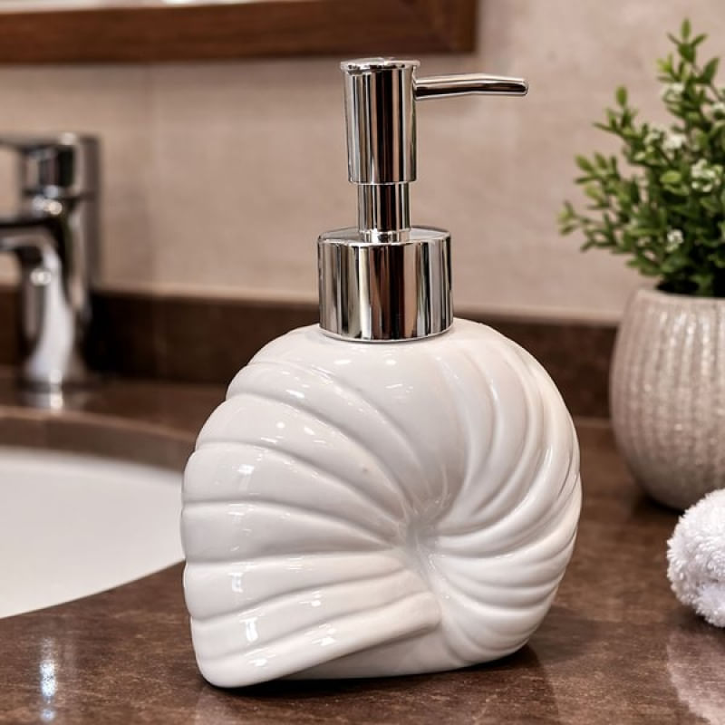 Porta Sabonete Liquido Saboneteira Dispenser Mar Praia 350ml Caracol - Deixe seu banheiro ou lavabo mais bonito e organizado com este porta sabonete líquido com temática de mar e praia. Além de funcional, ele traz um toque decorativo que combina perfeitamente com ambientes leves, modernos e com estilo praiano Características: Capacidade: 350ml Material resistente e durável em Cerâmica Estampa temática mar / praia Prático para sabonete líquido, detergente ou álcool gel Ajuda a manter o ambiente organizado e decorado Conteúdo do pacote: 1x Porta Sabonete Líquido 350ml Características Gerais do Produto: • Material: Cerâmica • Modelo: Porta Sabonete Liquido • Cor: Branco • Capacidade em litros: 350ml Garantia: • Garantia do site - 1 Mês