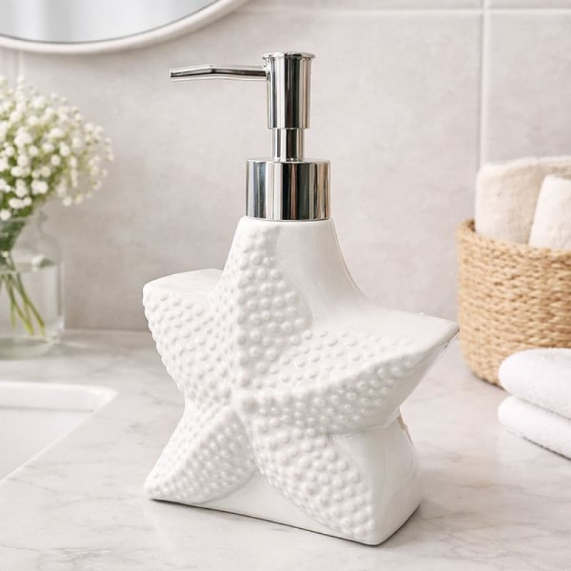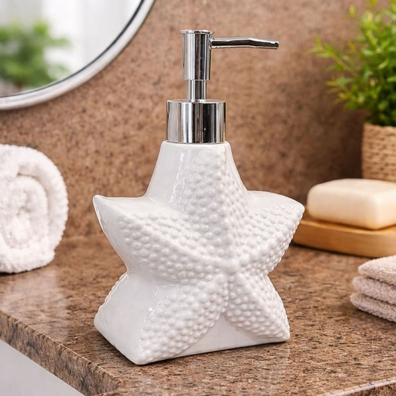 Porta Sabonete Liquido Saboneteira Dispenser Mar Praia 350ml Estrela - Deixe seu banheiro ou lavabo mais bonito e organizado com este porta sabonete líquido com temática de mar e praia. Além de funcional, ele traz um toque decorativo que combina perfeitamente com ambientes leves, modernos e com estilo praiano Características: Capacidade: 350ml Material resistente e durável em Cerâmica Estampa temática mar / praia Prático para sabonete líquido, detergente ou álcool gel Ajuda a manter o ambiente organizado e decorado Conteúdo do pacote: 1x Porta Sabonete Líquido 350ml Características Gerais do Produto: • Material: Cerâmica • Modelo: Porta Sabonete Liquido • Cor: Branco • Capacidade em litros: 350ml Garantia: • Garantia do site - 1 Mês