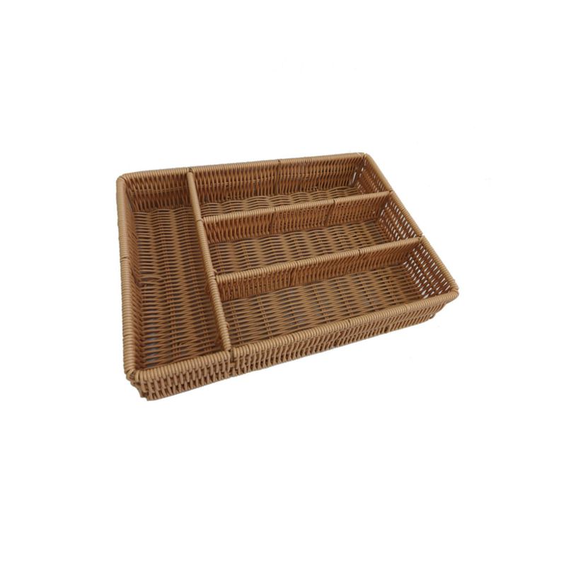 Porta Talher 4 Divisórias Rattan 35cm HauskraftNome do ProdutoPorta Talher 4 Divisórias Rattan 35cm HauskraftProblema que o produto resolve / Necessidade que atendeO Porta Talher 4 Divisórias Rattan 35cm Hauskraft é a solução ideal para manter seus talheres organizados e acessíveis. Com um design prático, este item combina funcionalidade e estilo para sua cozinha.Características e Benefícios ChaveDesenvolvido pela Hauskraft, este porta talher oferece quatro divisórias que permitem separar garfos, facas, colheres e outros utensílios de forma eficiente. Seu visual inspirado no rattan adiciona um toque de elegância e organização à sua gaveta ou bancada, otimizando o espaço e facilitando o dia a dia.DiferenciaisOrganização Eficiente: Quatro divisórias para categorizar seus talheres.Design Rattan: Estilo que complementa a decoração da cozinha.Praticidade: Mantém os utensílios sempre à mão e em ordem.Detalhes AdicionaisIdeal para gavetas ou para uso direto na bancada.Contribui para um ambiente mais arrumado e funcional.Mais sobre o ProdutoMaterial: PolipropilenoCor: RattanDimensões: 35cm x 25cm x 5cmInstruções de Uso e CuidadosDicas de UsoDicas de Uso: Posicione em local de fácil acesso para otimizar o uso diário.Recomendações de Limpeza e ManutençãoRecomendações de Limpeza: Limpe com um pano úmido e detergente neutro. Evite produtos abrasivos.Ficha TécnicaMarca: HAUSKRAFTNome: PORTA TALHER 4 DIV RATTAN 35CMEAN: 7897186099736Código de Referência: RTAN020Material: PolipropilenoCor: RattanDimensões: 35cm