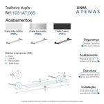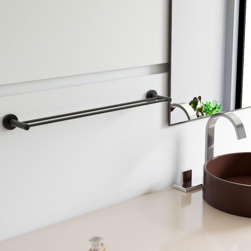 Porta Toalha Toalheiro Duplo Para Banheiro Preto Fosco Atenas 65cmO toalheiro duplo da linha Atenas possui um design retrô, é uma peça que se destaca com luxo e elegãncia. ;Além de decorar, organiza com funcionalidade o banheiro. Criado em metais nobres com uma qualidade que abrange áreas litorâneas e possui a garantia de um acabamento muito resistente. ;Agora é só você adquirir este lindo acessório e fazer o seu projeto se tornar realidade com um banheiro prático para toda a sua família.CARACTERÍSTICAS ;• Fabricado em metal aço inox e alumínio.• Disponível no Prata Alto Brilho, Escovado e Preto Fosco.• Pode ser instalado em parede, azulejo e porcelanato.BENEFÍCIOS• Fixação prática e segura com parafusos e buchas inclusos.• O produto não possui nenhum detalhe em plástico (ABS).• Fácil higienização, ideal para locais que exigem limpeza constante.• Aproveitamento inteligente do espaço, ideal para ambientes compactos.• Resistente à corrosão e luz solar.ITENS ENVIADOS: 1 toalheiro duplo 65cm, kit de parafusos e manual instrução instalação.INSTALAÇÃO INTELIGENTEAo 1º furo, use uma broca medida menor, após use a medida correta e finalize, vai ajudar na precisão da fixação da bucha principalmente em azulejos e porcelanato.