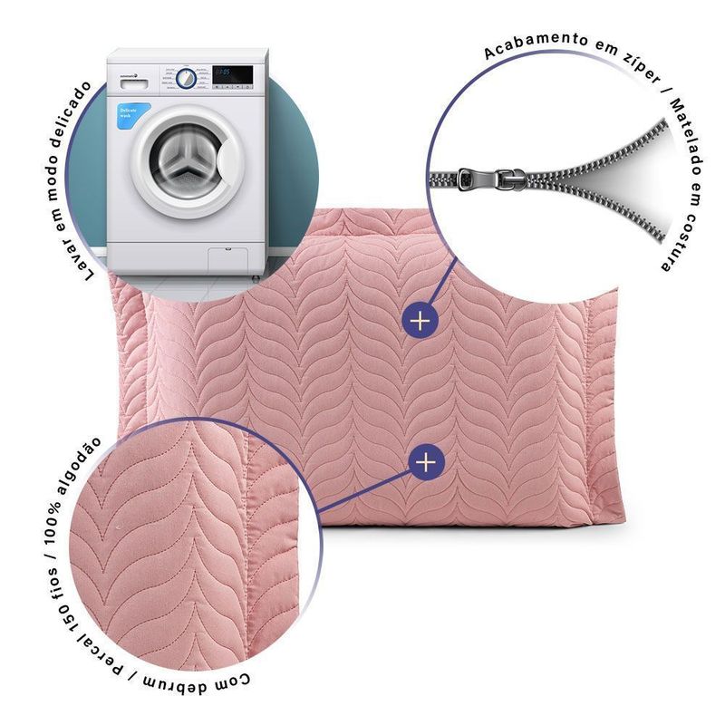 Cama, Mesa e BanhoCamaAcessórios e CapasCapa e Porta TravesseiroPorta Travesseiro Avulso 70cm x 50cm Com Debrum 1 Peça Paris Matelado Percal 150 Fios 100% Algodão - Rosê