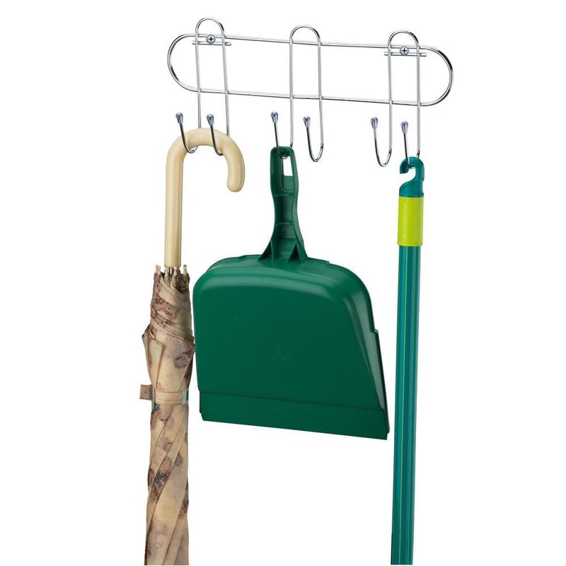 Organize sua lavandeira de uma maneira prática e funcional com este Suporte da Utimil. Ele contém 3 ganchos duplos ideais para pendurar vassouras, rodos, pá de lixo e outros utensílios que você necessitar para limpeza da casa.Pode ser instalado na parede, na porta ou no armário e ainda agrega mais beleza ao ambiente com seu design em aço cromado.