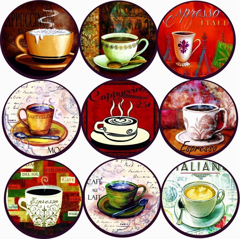 Porta Xícaras , Canecas ou copos, em MDF plotado com adesivo vinil, alta qualidade.Fácil de Limpar, muito resistente.MDF 3 mm recortado a Laser, com excelente acabamentoDecorativo e útil .Nove peças com imagens em alta definição.Com o diâmetro de 10 cm, da um detalhe a mais em sua mesa.Se preferir com sua logo, estamos prontos a atender