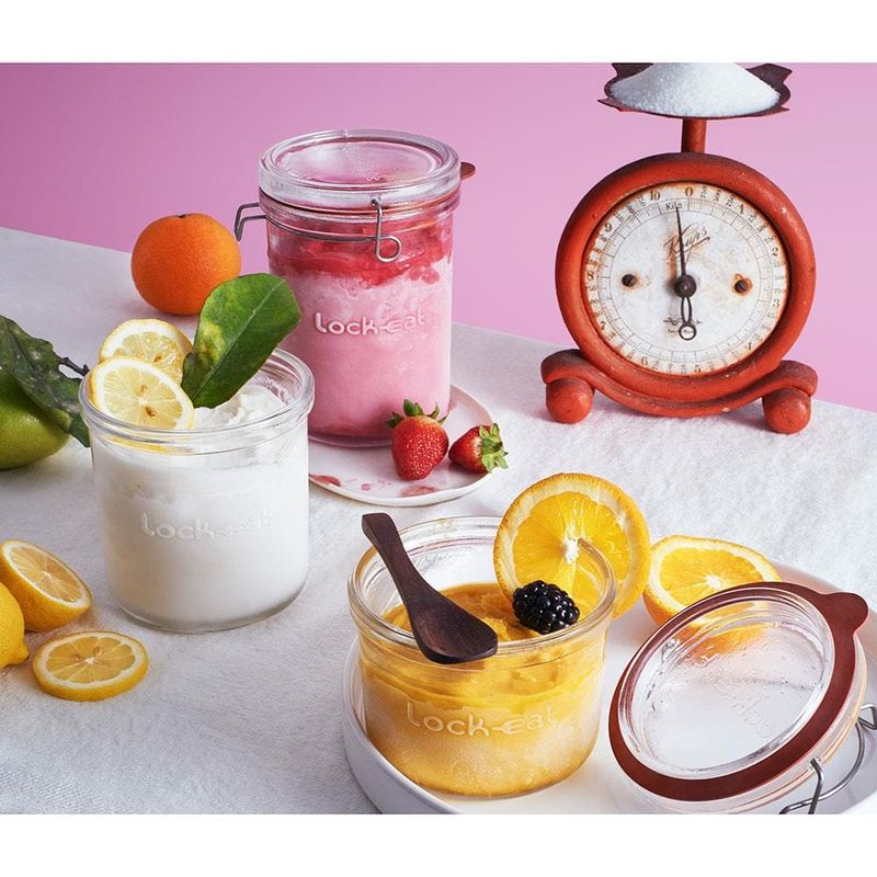 Os potes de vidro da coleção Lock Eat foram concebidos para preservar alimentos, independente da receita que você prepare. Com eles, é possível conservar frutas, legumes, compotas, geleias, xaropes e sucos de fruta por mais tempo. Além disso, seu uso também se estende por produtos que vão desde quentes até frios, óleos, picles, salmouras, defumados, doces ou salgados. Uma infinidade de possibilidades!Seu corpo, tanto quanto a tampa, são produzidos em vidro 100% eco-friendly, podendo ser reciclados após o uso. E por serem transparentes, facilitam a visualização do conteúdo interno, sem que para isso seja preciso abri-lo. Podem ser lavados em lava-louças convencionais, mas não podem ir ao micro-ondas, por exemplo, a não ser que o grampo e a borracha sejam retirados. E por falar no grampo, ele é feito de aço inox, que não enferruja, e, caso seja retirado, o pote Lock Eat pode ser levado à mesa, bar ou buffet, do mesmo jeito.