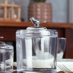 Pote de Cristal Ecológico com Tampa Bird em Alto-Relevo da Wolff une sustentabilidade, elegância e funcionalidade em uma peça que valoriza qualquer ambiente. Fabricado em cristal ecológico, este pote se destaca pelo alto brilho e transparência, aliando sofisticação a um menor impacto ambiental. Seu relevo decorativo traz formas delicadas inspiradas na leveza dos pássaros, tornando-o visualmente marcante.Com medidas proporcionais (14,5x10,5x10,5cm), o pote é ideal para armazenar ingredientes, petiscos ou pequenos objetos. Também pode ser usado como peça decorativa sobre bandejas, aparadores ou mesas. A tampa funcional se integra perfeitamente ao design, protegendo o conteúdo e contribuindo para a harmonia estética do conjunto. O resultado é uma peça encantadora, que combina utilidade com beleza refinada. Cristal Ecológico: o que garante peças mais leves e sofisticadas Alta qualidade: cristal resistente e durável, com acabamento refinado e brilho notável. Medidas: 14,5x10,5x10,5cm. Peso: 658g Seja para uso próprio ou para presentear, o Pote Bird da Wolff é uma escolha sofisticada que traz charme atemporal aos espaços.