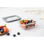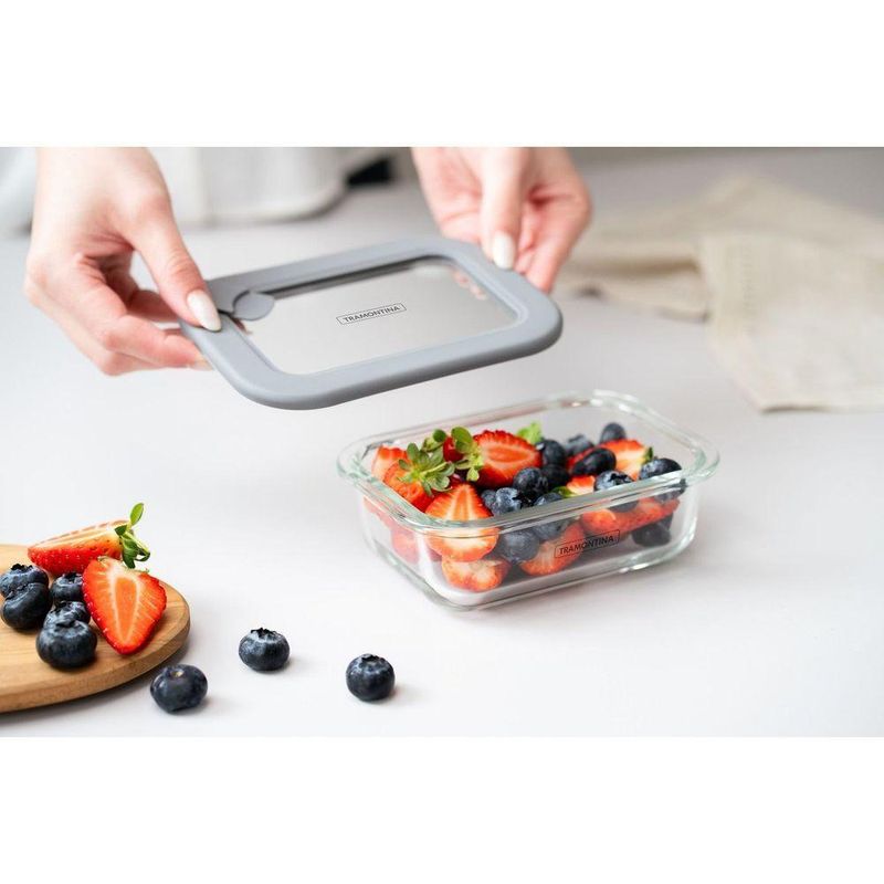 Pote De Vidro Tramontina Vittra Retangular Com Tampa Hermética De Silicone 0,64 L TramontinaPote de Vidro Tramontina Vittra Retangular com Tampa Hermética de Silicone 0,64 L Tramontina -Pote de Vidro Tramontina Vittra Retangular com Tampa Hermética de Silicone 0,64 LO pote de vidro Tramontina Vittra retangular com tampa hermética de silicone 0,64 L oferece a praticidade necessária para o seu dia a dia. Produzido em vidro borossilicato, é resistente e ideal para armazenar alimentos com segurança. Sua tampa de vidro com silicone garante fechamento hermético, mantendo os alimentos frescos e organizados. Pode ser utilizado no micro-ondas, forno (sem tampa), freezer e geladeira, além de ser empilhável para uma melhor organização. Um item prático, resistente e versátil.Com tampas de vidro com borda em silicone, os potes tem fechamento hermético perfeito e garante que seus alimentos ficarão frescos por mais tempo, sem risco de contaminação externa. Eles são empilháveis, permitindo que você aproveite ao máximo o espaço do seu armário de forma organizada.- Adequado para micro-ondas (cuidado: abra a abertura de saída de ar).- Permitido para máquina de lavar (sem a tampa).- Apropriado para forno (sem a tampa).- Permitido para freezer e geladeira.- Para fechar a tampa, abra primeiramente a abertura de saída de ar, coloque a tampa no corpo e, em seguida, feche a abertura de saída de ar.Cuidados com o produto Confira o produto para garantir que ele não tenha sido danificado durante o transporte.Lave o produto com água e detergente neutro antes de usar.Use apenas sabão ou detergente e uma esponja macia. Outros tipos de produto, como palha de aço, poderão riscar ou prejudicar o brilho das peças.Por ter o corpo em vidro, requer certos cuidados durante o uso e manuseio:Evite batidas que possam ocasionar trincas ou quebras no produto.Garantia90 dias de garantia legal para vícios ou defeitos de fabricação. - -Características Gerais do Produto:Garantia: - 3 Meses