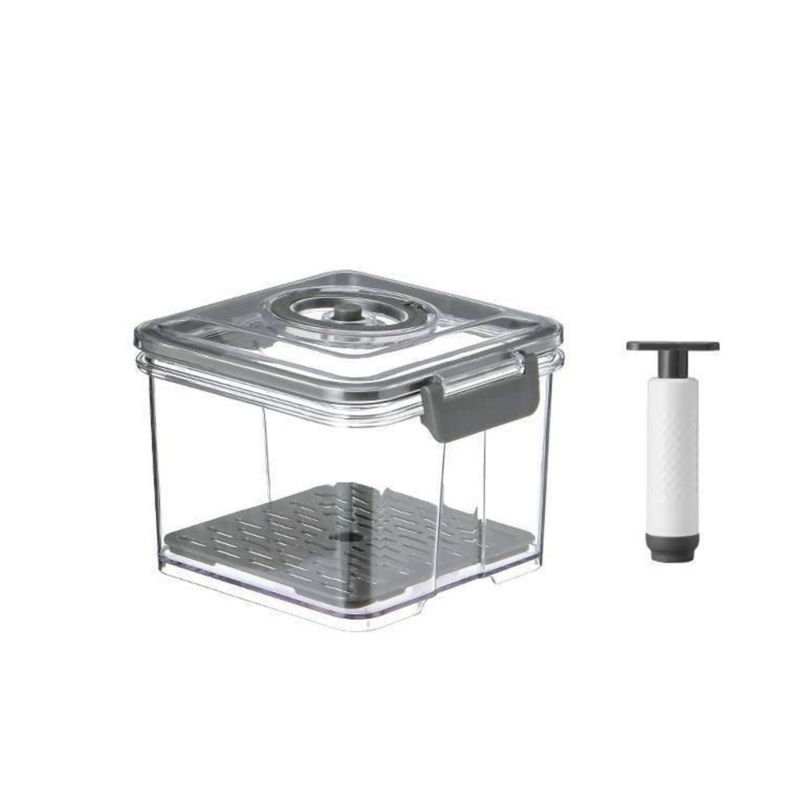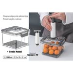 Ideal para armazenar alimentos com máxima conservação, este pote com vedação a vácuo oferece praticidade e eficiência no dia a dia. Com dimensões de 15 cm de comprimento × 15 cm de largura × 12 cm de altura, ele é compacto, mas espaçoso o suficiente para manter alimentos frescos por mais tempo. O grande diferencial está no seu sistema de vedação a vácuo, que prolonga significativamente a vida útil dos alimentos ao reduzir a exposição ao oxigênio. O pote acompanha uma bomba manual de vácuo, permitindo a remoção do ar de forma simples e rápida, mantendo grãos, cereais, frutas picadas, frios, queijos e até refeições prontas bem conservados.Produzido em plástico resistente e livre de BPA, seu corpo transparente facilita a visualização do conteúdo, ajudando na organização da despensa ou geladeira. A tampa possui trava lateral, garantindo uma vedação firme e segura, sem vazamentos. Seu formato retangular e empilhável otimiza o espaço em armários, prateleiras e geladeiras, tornando-o ideal para quem busca funcionalidade, organização e conservação eficiente de alimentos.Especificações;Composição: PlásticosCapacidade: 1,5 LitrosDimensões: 15 cm de comprimento × 15 cm de largura × 12 cm de alturaCor: CinzaPeso: 400gContém;01 Pote Hermético com Bomba de Vácuo 1,5L - Cinza