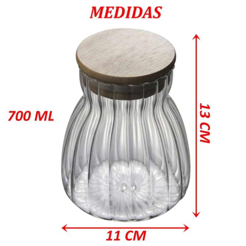 Pote Hermético Com Frisos Tampa Bambu Recipiente Vidro 700ml - Armazenamento com Estilo e Sustentabilidade! Se você ama uma cozinha organizada, funcional e com um toque natural, esse é o item que faltava na sua casa! Apresentamos o Pote Hermético de Vidro com Tampa de Bambu! Especificações: Material: Vidro e bambu; Medidas: Altura 13cm X Diâmetro 11cm; Capacidade de 700ml; Vedação Hermética mantém seus alimentos frescos por mais tempo; Tampa de Bambu Natural; Embalagem: 1 Pote Hermético Com Tampa de Bambu 700ml; Entrega rápida para todo o Brasil; Tire suas duvidas em nosso chat!! Características Gerais do Produto: • Material: Vidro; Madeira; Borracha • Modelo: Pote Hermético • Cor: Transparente • Dimensões aproximadas: Altura 13cm X Diâmetro 11cm • Capacidade em litros: 700ml Garantia: • Garantia contra avarias no transporte