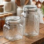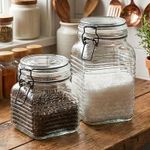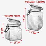 Potes Hermético Porta Mantimentos Clipe Metal Vidro Kit 2pçs - Mantenha seus alimentos sempre frescos e organizados com este pote hermético de vidro, ideal para armazenar mantimentos do dia a dia com praticidade e estilo! Características do Produto: Capacidades: 1,330ml x 750ml Material: Vidro resistente de alta qualidade Tampa com fechamento hermético e clipe metálico, garantindo vedação completa Transparente: facilita ver o conteúdo e controlar o nível rapidamente Design elegante que combina com qualquer cozinha Medidas: Altura 19cm x Largura 11cm x 1,330ml Medidas: Altura 12cm x Largura 11cm x 750ml Embalagem: 1x Pote Hermético Vidro De 1,330ml 1x Pote Hermético Vidro De 750ml Características Gerais do Produto: • Material: Vidro • Modelo: Pote Hermético • Cor: Transparente • Dimensões aproximadas: 19cm x 12cm • Capacidade em litros: 1,330ml x 750ml Garantia: • Garantia contra avarias no transporte